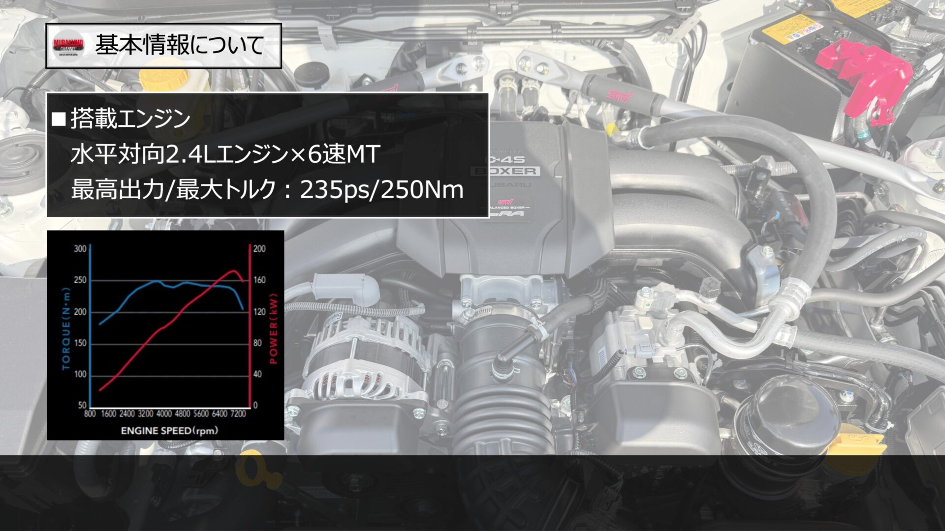 BRZ STI Sport TYPE RAの心臓部には、水平対向4気筒2.4Lエンジン「FA24型」が搭載されています。