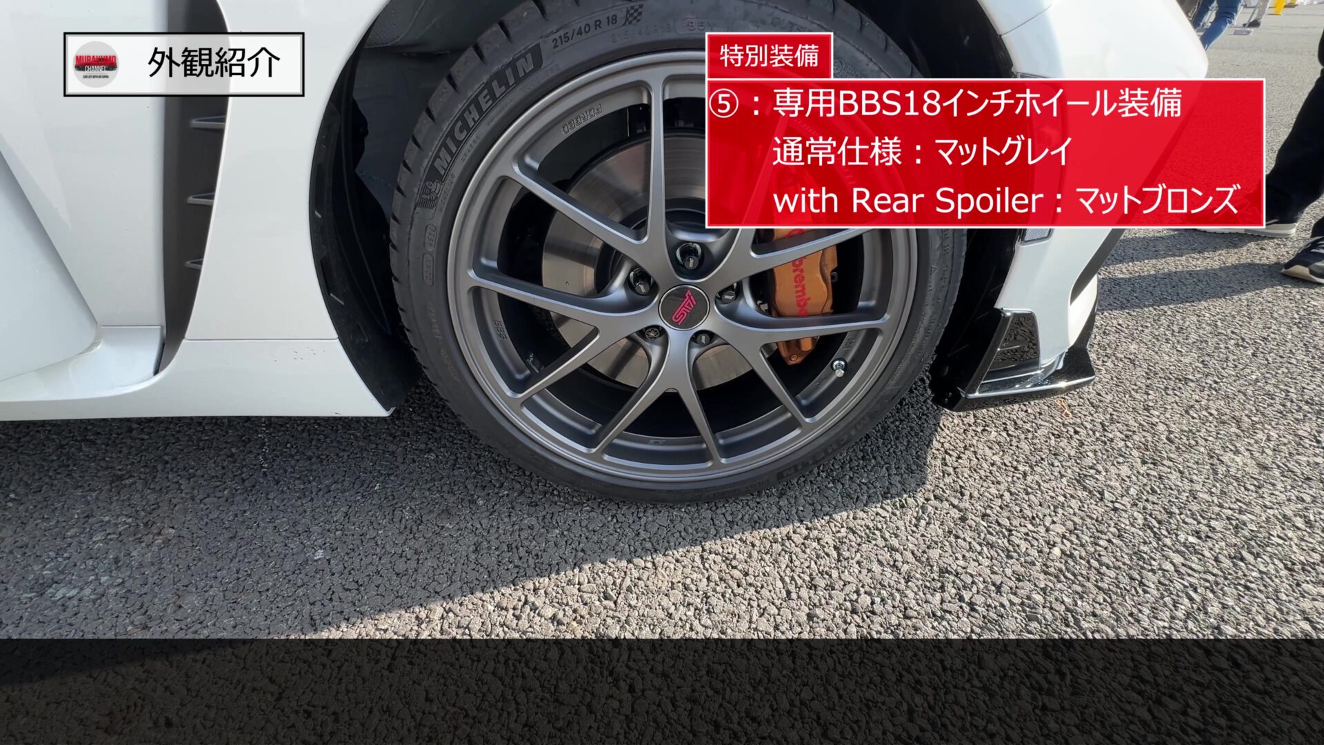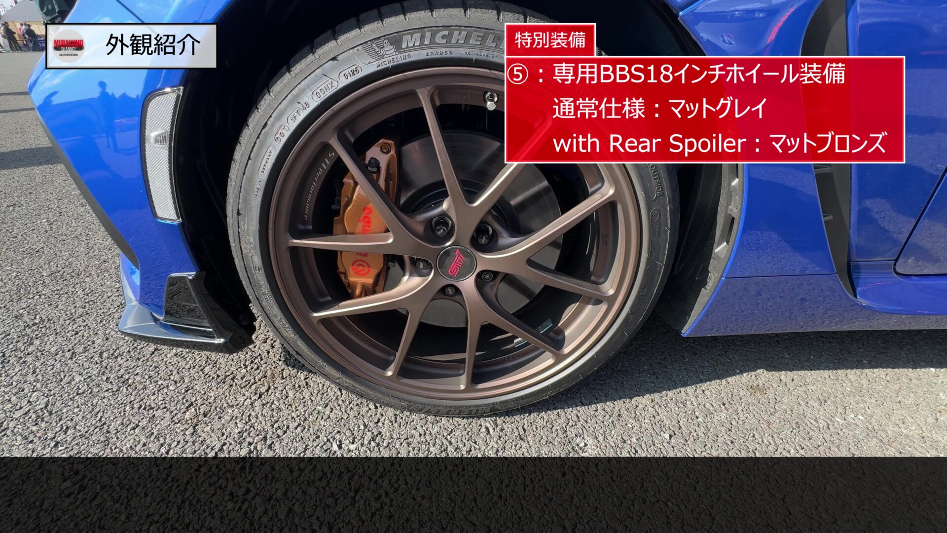 鍛造ホイールならではの高剛性・軽量化により、バネ下重量を減らし、ハンドリングと乗り心地の向上に寄与しています。塗装色はグレードによって異なり、標準のTYPE RAではマットグレイ、リアスポイラー付のTYPE RA with Rear Spoilerではマットブロンズとなっています。