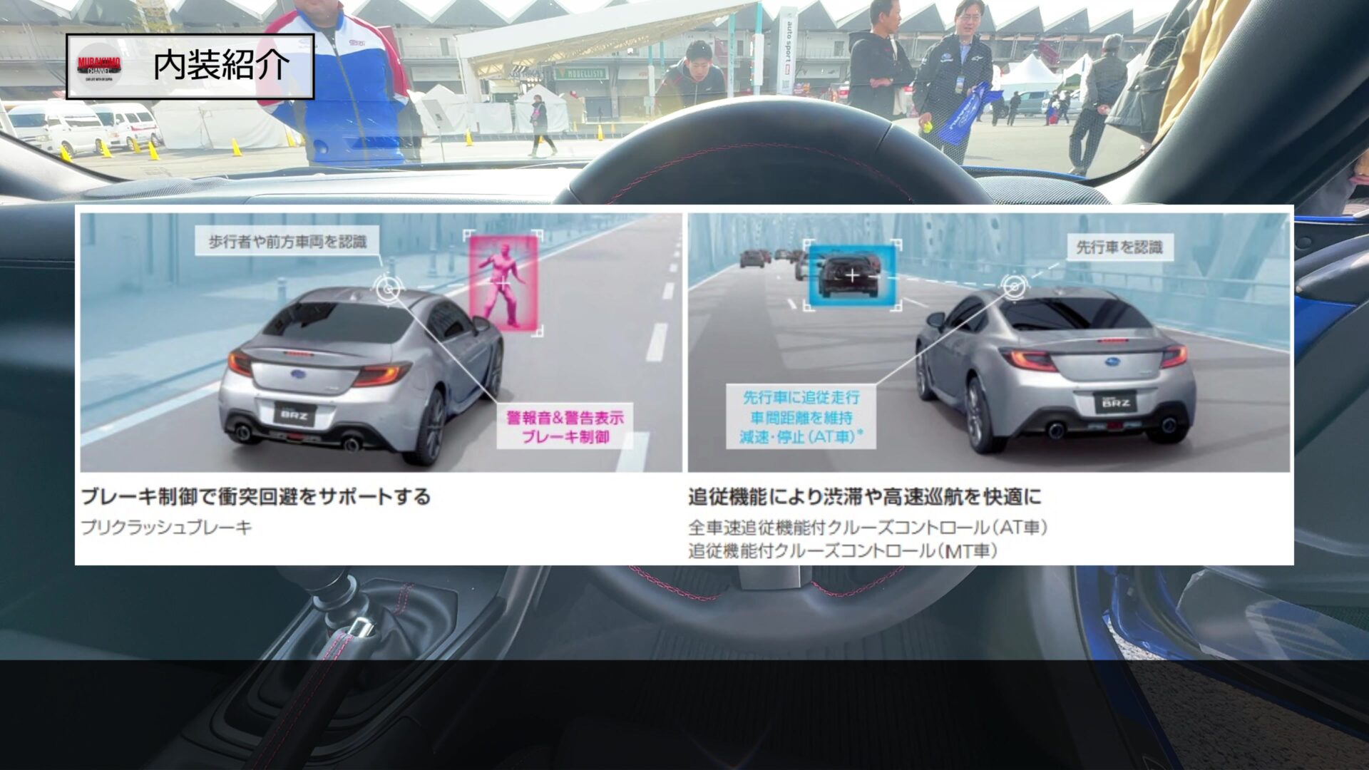BRZ STI Sport TYPE RAには、スバル独自の運転支援システムであるEyeSightの技術が搭載されています。このモデルはMT車専用のため、EyeSightのうち「アイサイト・コアテクノロジー」と呼ばれる