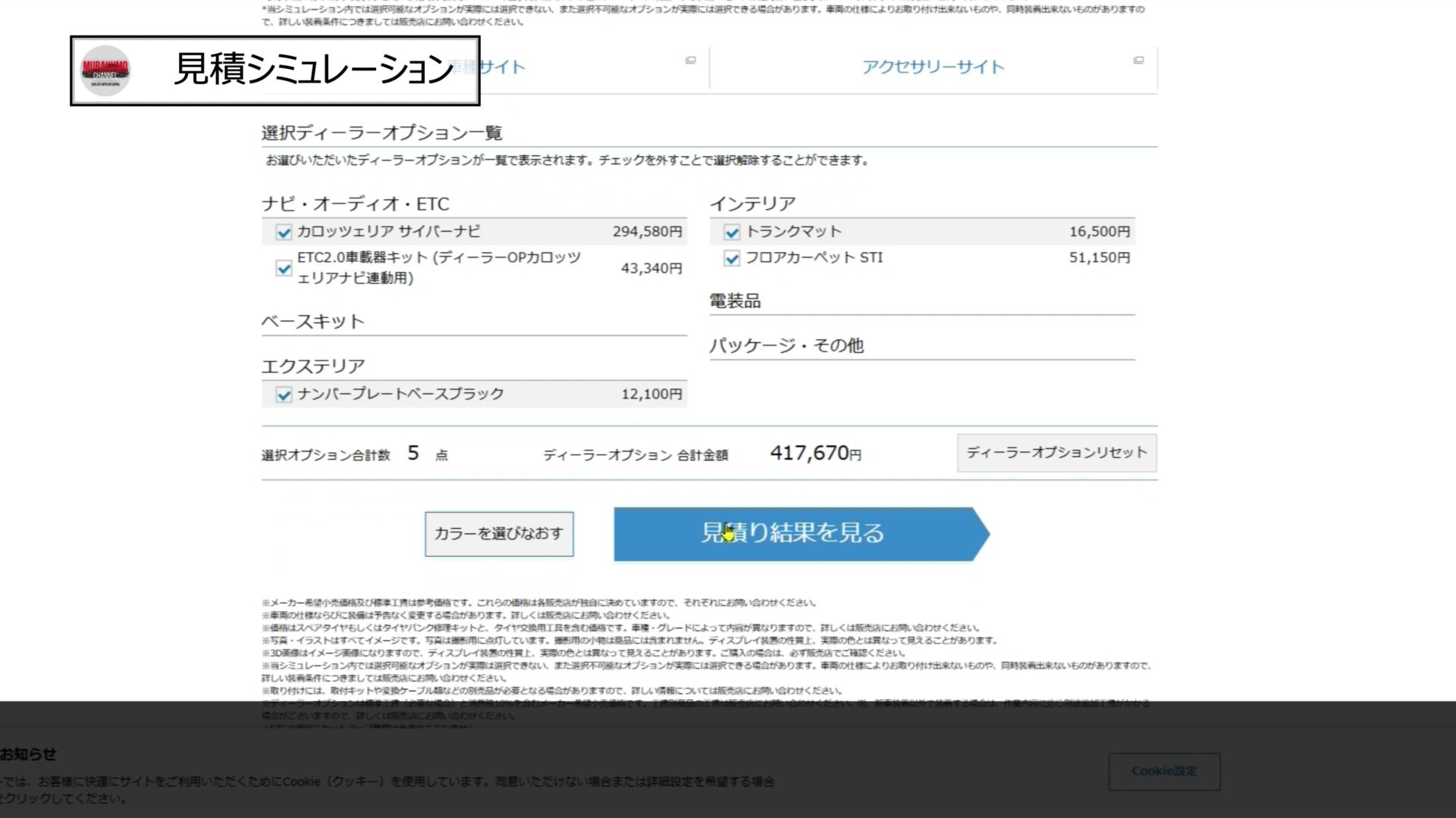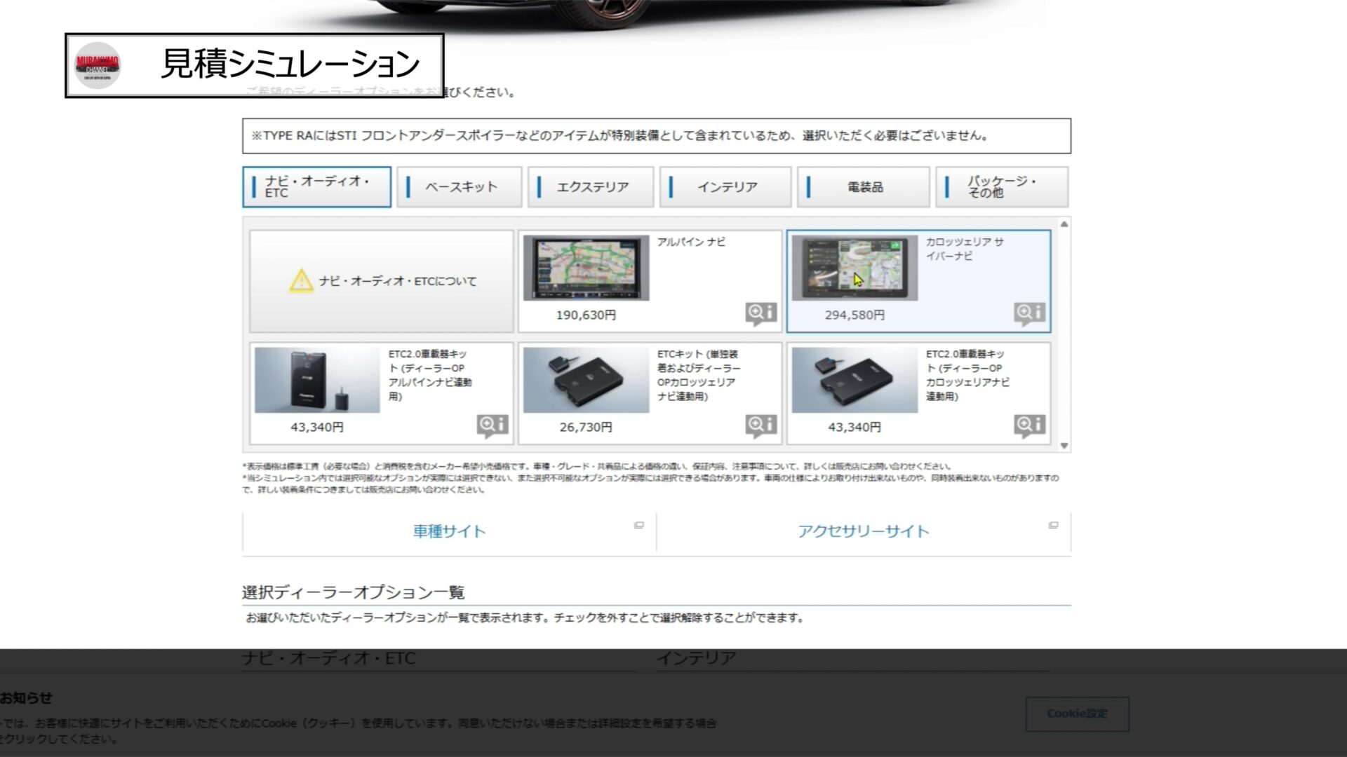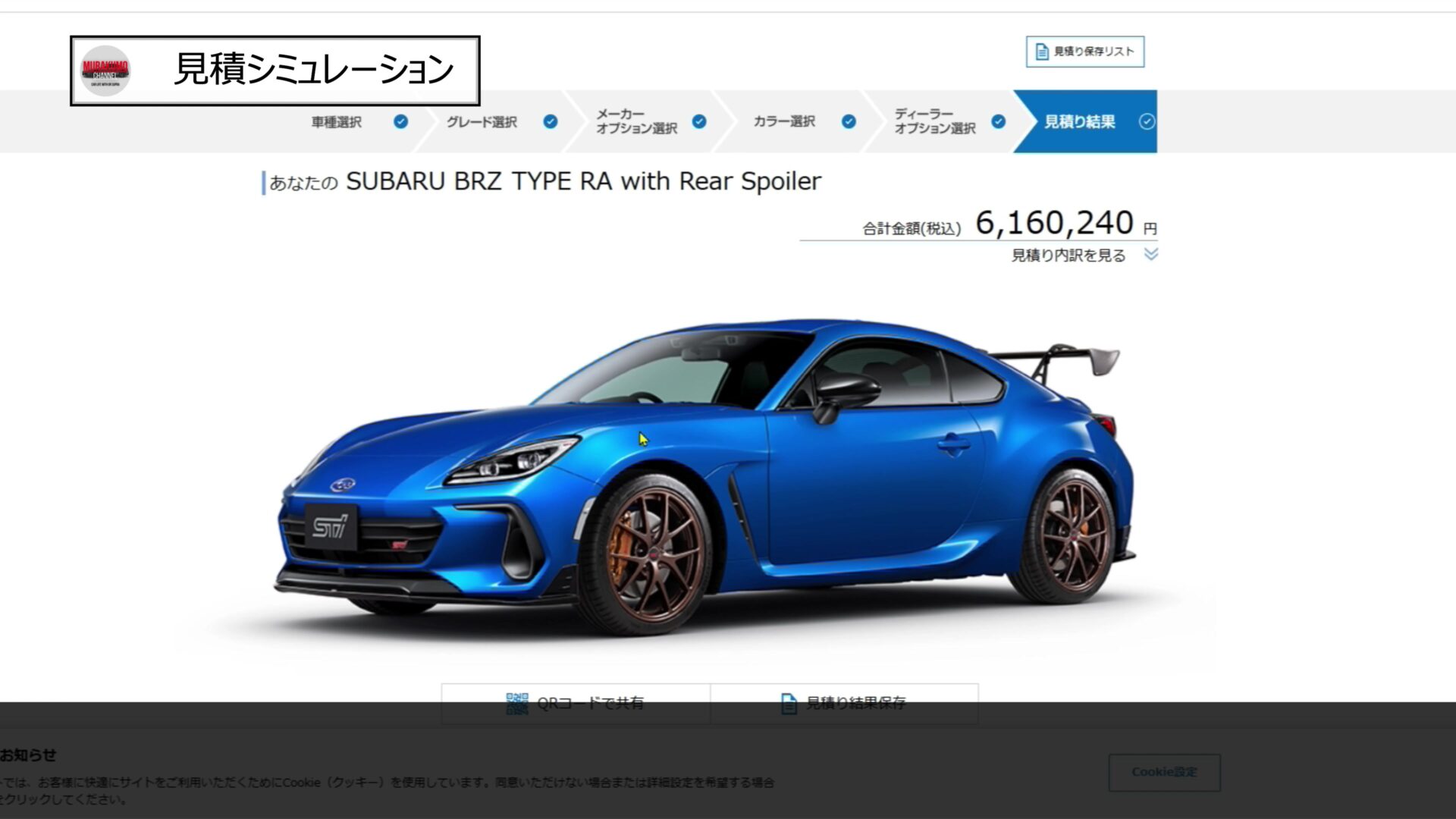 最後に、STI-RA仕様での見積シミュレーションを実施してみました。