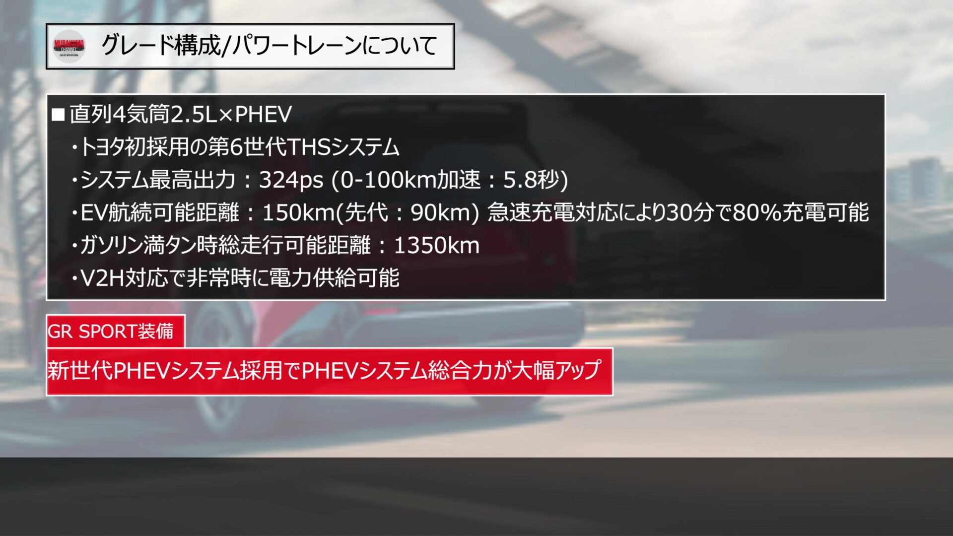 走行性能においては、150キロメートルのEV走行を可能にしたPHEVシステムとGR専用の足回りが生み出す正確でダイナミックな走りが最大の見どころです。