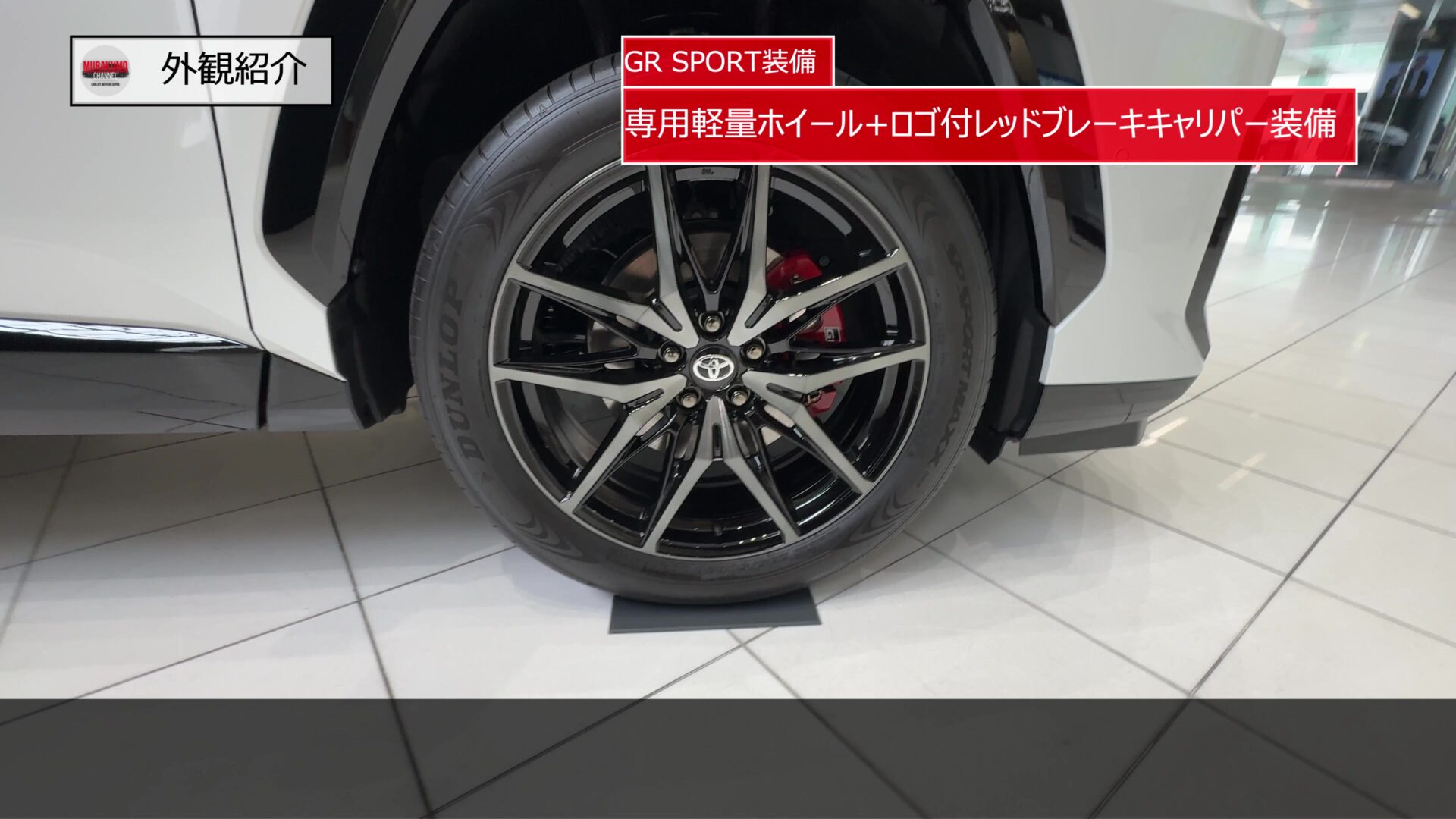 また、ホイールの隙間からは、GRのロゴが入ったレッド塗装のブレーキキャリパーが顔を覗かせており、高い制動性能を予感させる重要なデザイン要素となっています。