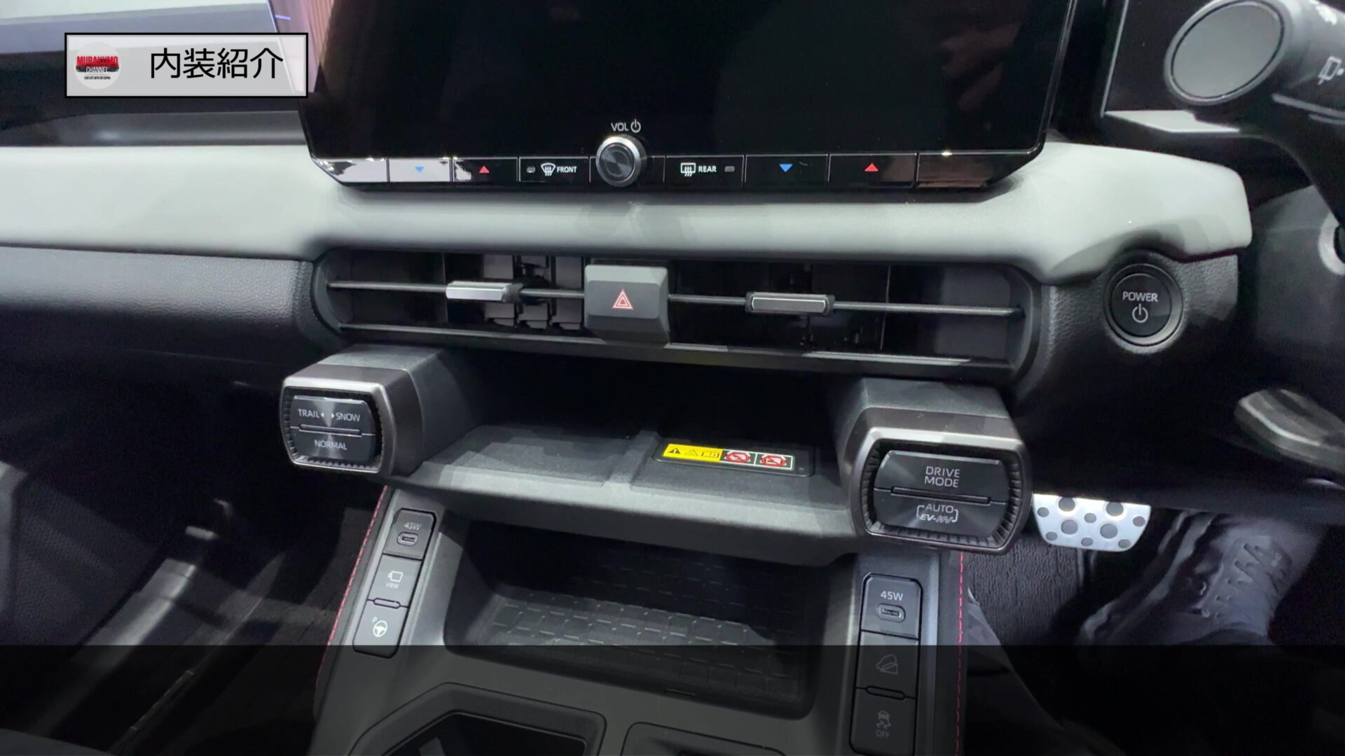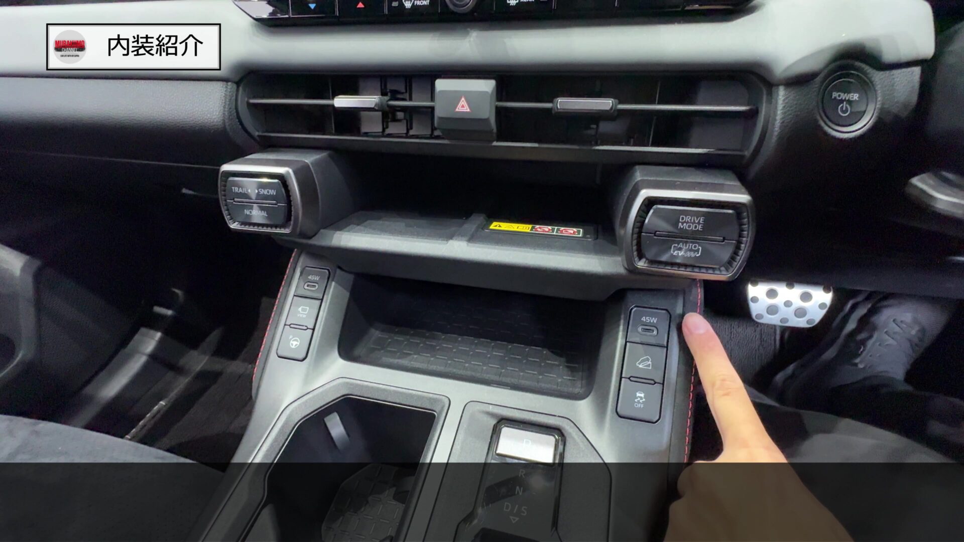 その下にも小物入れスペースが設けられており、その両隣にはUSBポートなどが備え付けられています。こちらは急速充電(USB PowerDelivery)規格に対応したUSB端子が追加されており、ZグレードのフロントUSBは最大45W出力の急速充電に対応しているため、GR SPORTも同等の性能が担保されているものと思われます。
