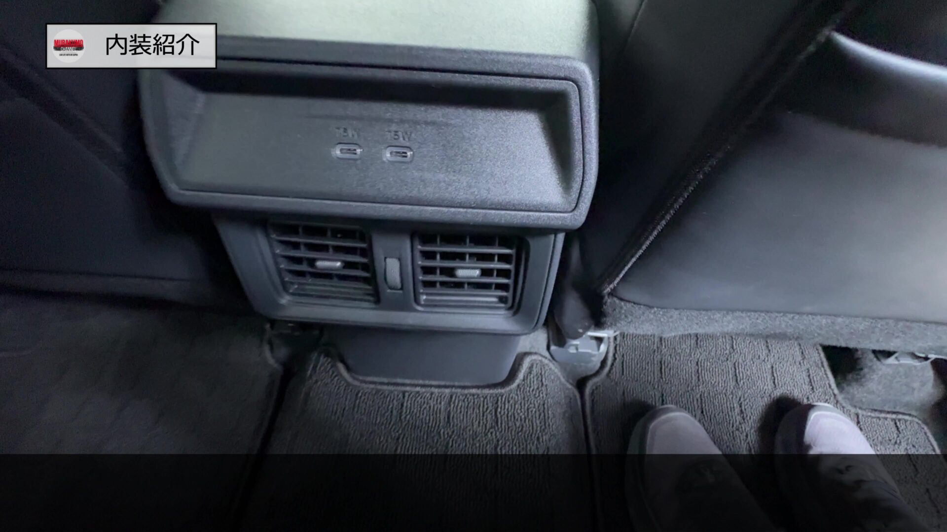 センタートンネルの高さは少しありましたので3人掛けの際には譲りあいが必要そうでした。またセンタートンネル上部にはUSBポートとエアコン吹き出し口が設けられています。