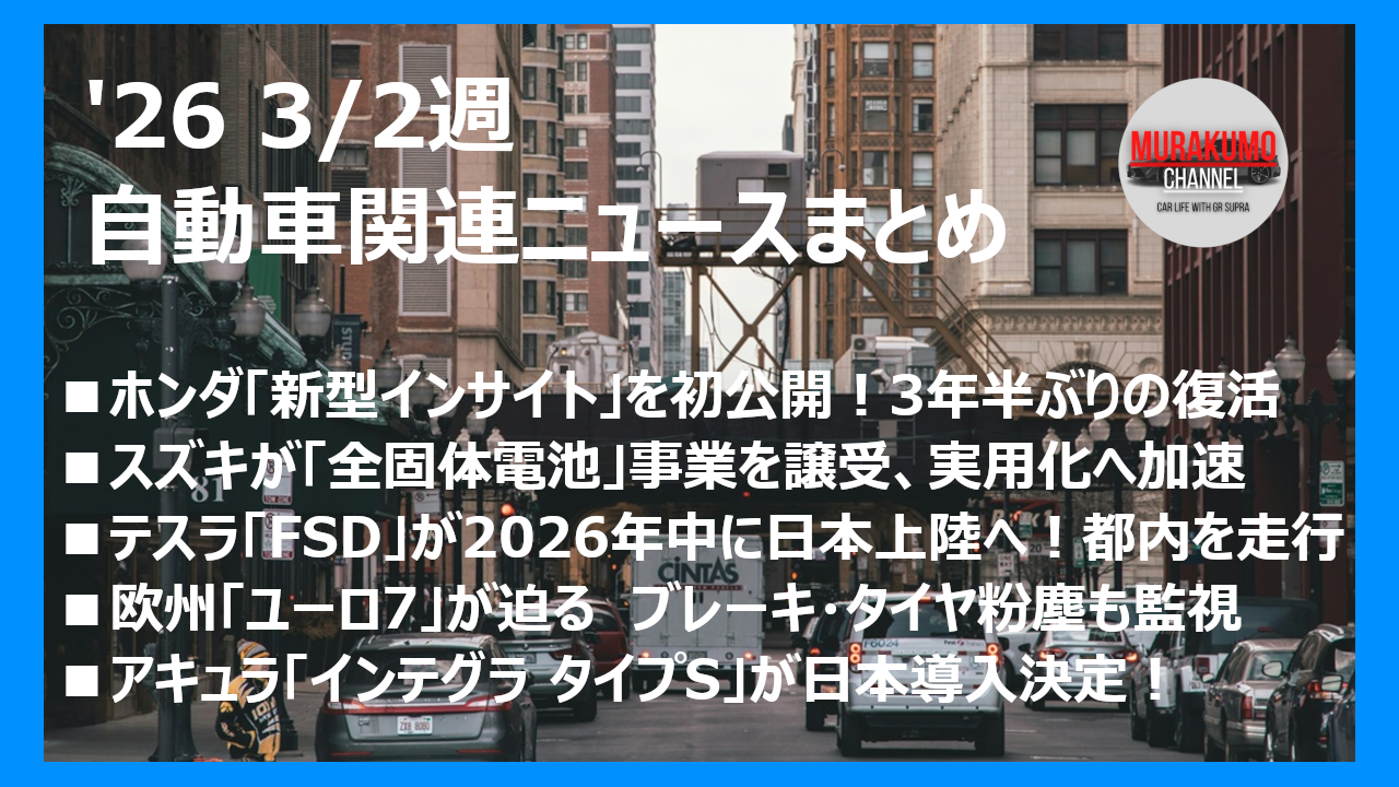 スズキは3月4日、カナデビア(旧日立造船)から全固体電池事業を譲り受ける契約を締結したと発表しました。全固体電池は、発火リスクが低く急速充電が可能な「次世代電池の本命」です。スズキはこの買収により、2026年7月を目途に開発・生産体制を自社に取り込み、小型車や二輪車への早期実装を目指します。軽自動車などの小さなモビリティにこそ、高効率なこの電池の恩恵は大きいはず。他メーカーとの開発競争が激化する中で、スズキが独自技術を確保したことは、将来の「お値打ちEV」登場を予感させる大きな一歩となりました。
