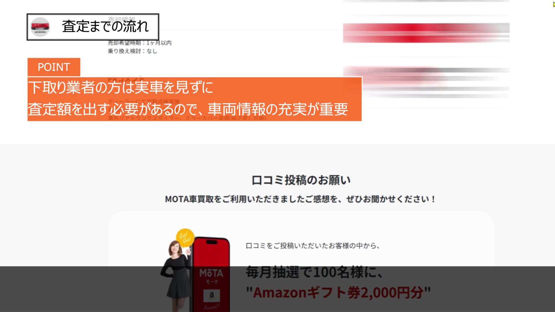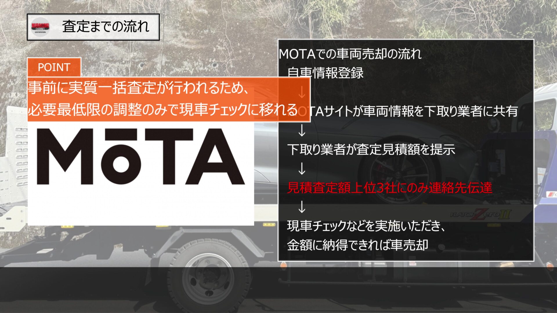 このため、先ほど申し上げたやり取りの時間が必要最低限となり、こちら側の負担も少なく、自分が本来やるべきであった一括査定をMOTA側に実施いただいたことになります。これは非常に助かる点かと思います。