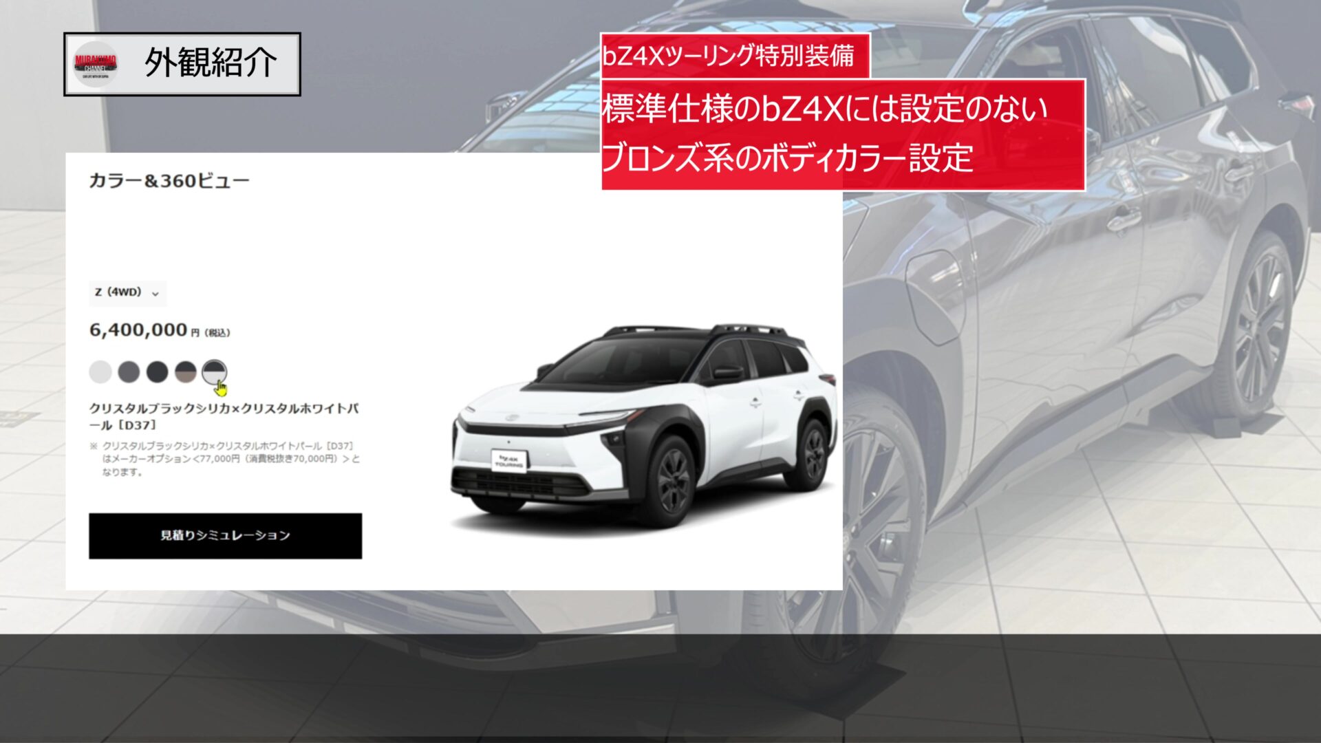 bZ4Xツーリングでは、モノトーンが3色、2トーンが2色の計5パターンが用意されています。