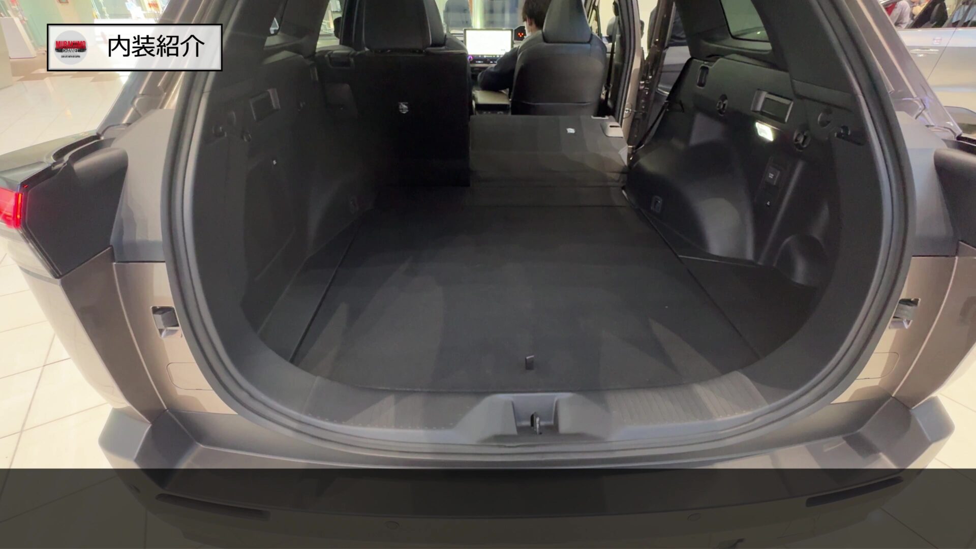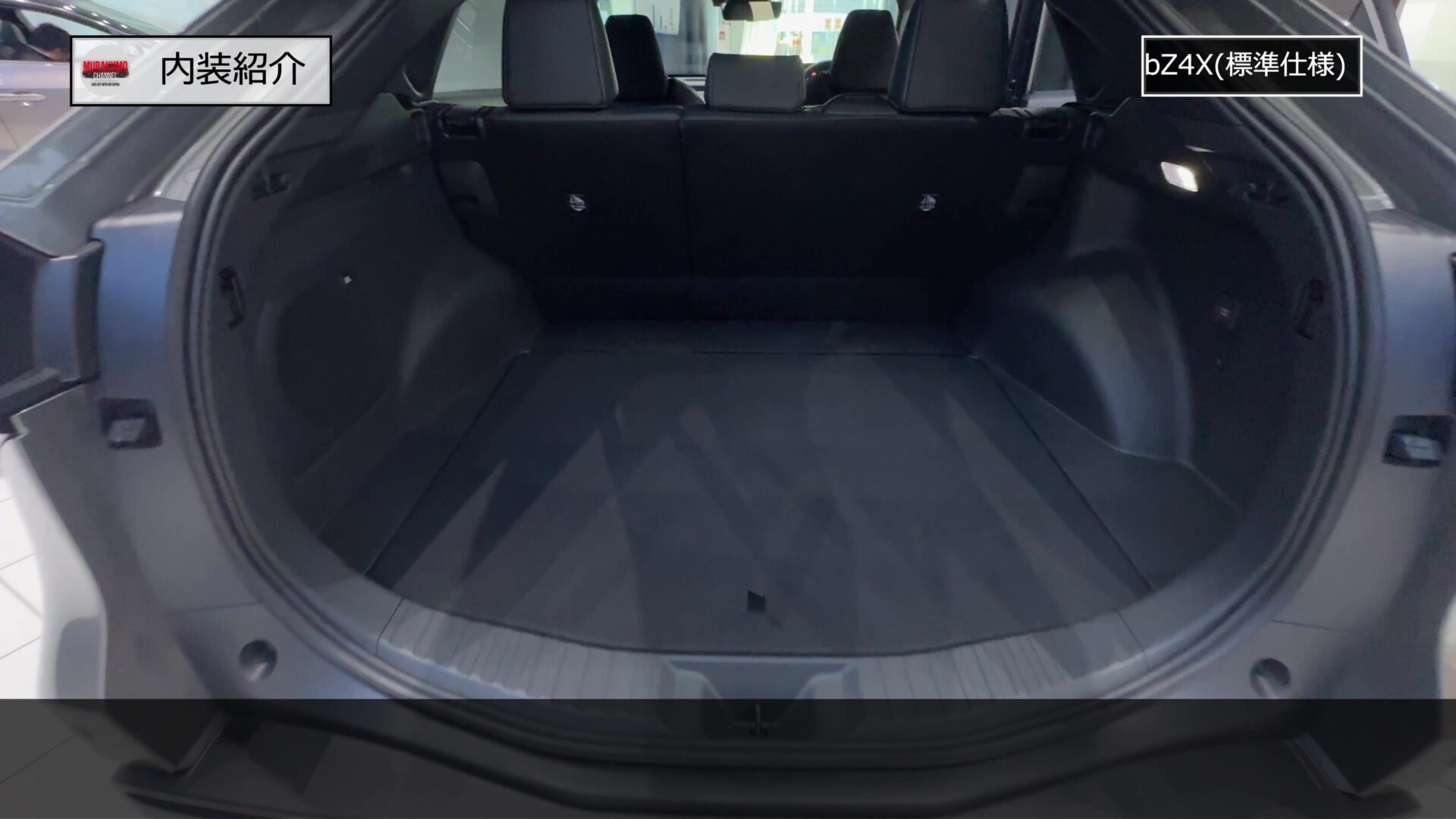 内装紹介、まずは実用派BEVの真骨頂とも言えるトランク容量の紹介です。