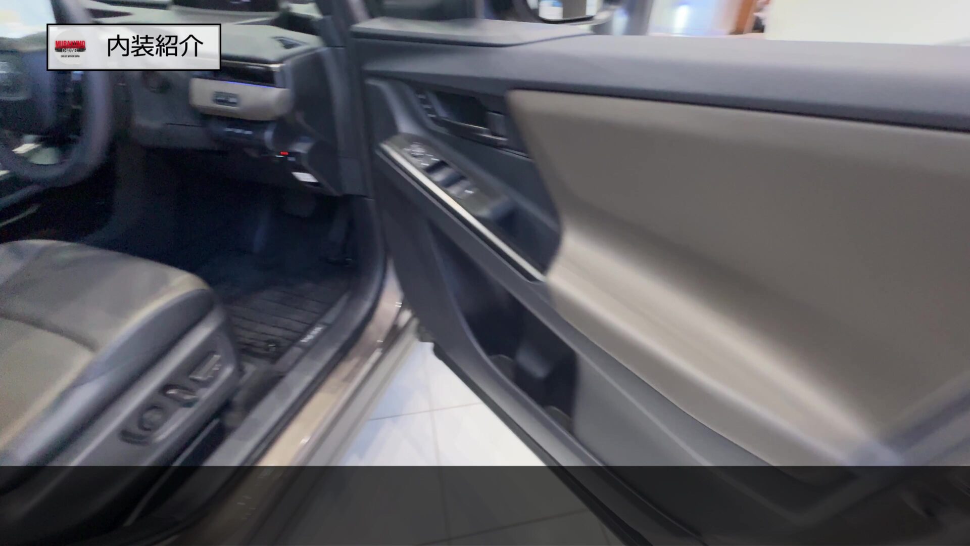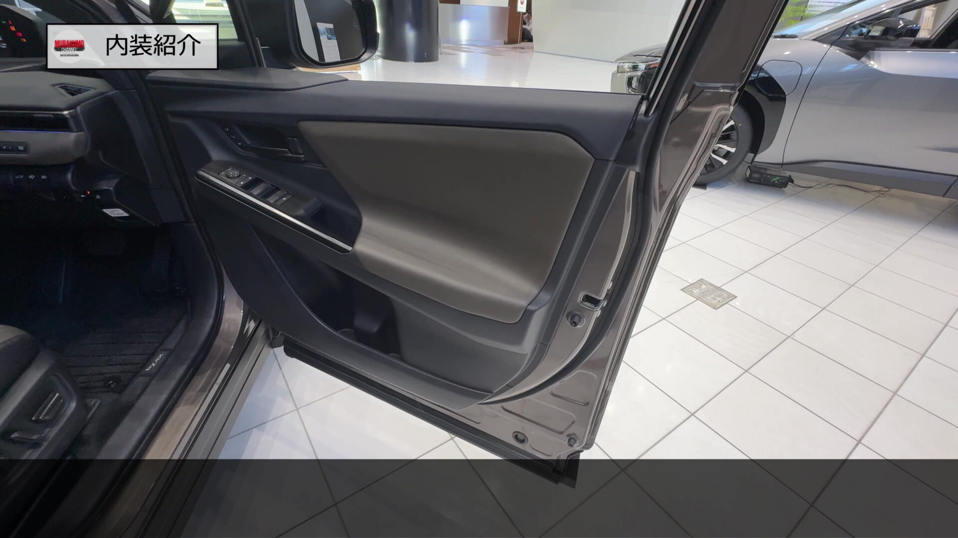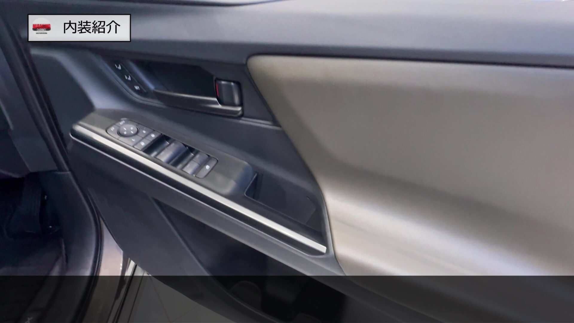 ドア内張はこのようになっており、こちらはカーキ内装の車両となっているため、カーキ色のソフトパッドを中心に、ドアノブやウィンドウ台座などにも加飾が与えられており、質感の高さが担保されています。カーキカラーの面が大部分を占めているため、エクステリアの装備と相まってアウトドア向きの車両である世界観を醸し出しています。ドアノブにはアンビエントライトの照明も装備されています。ご覧のシートメモリー機能も標準装備となっています。