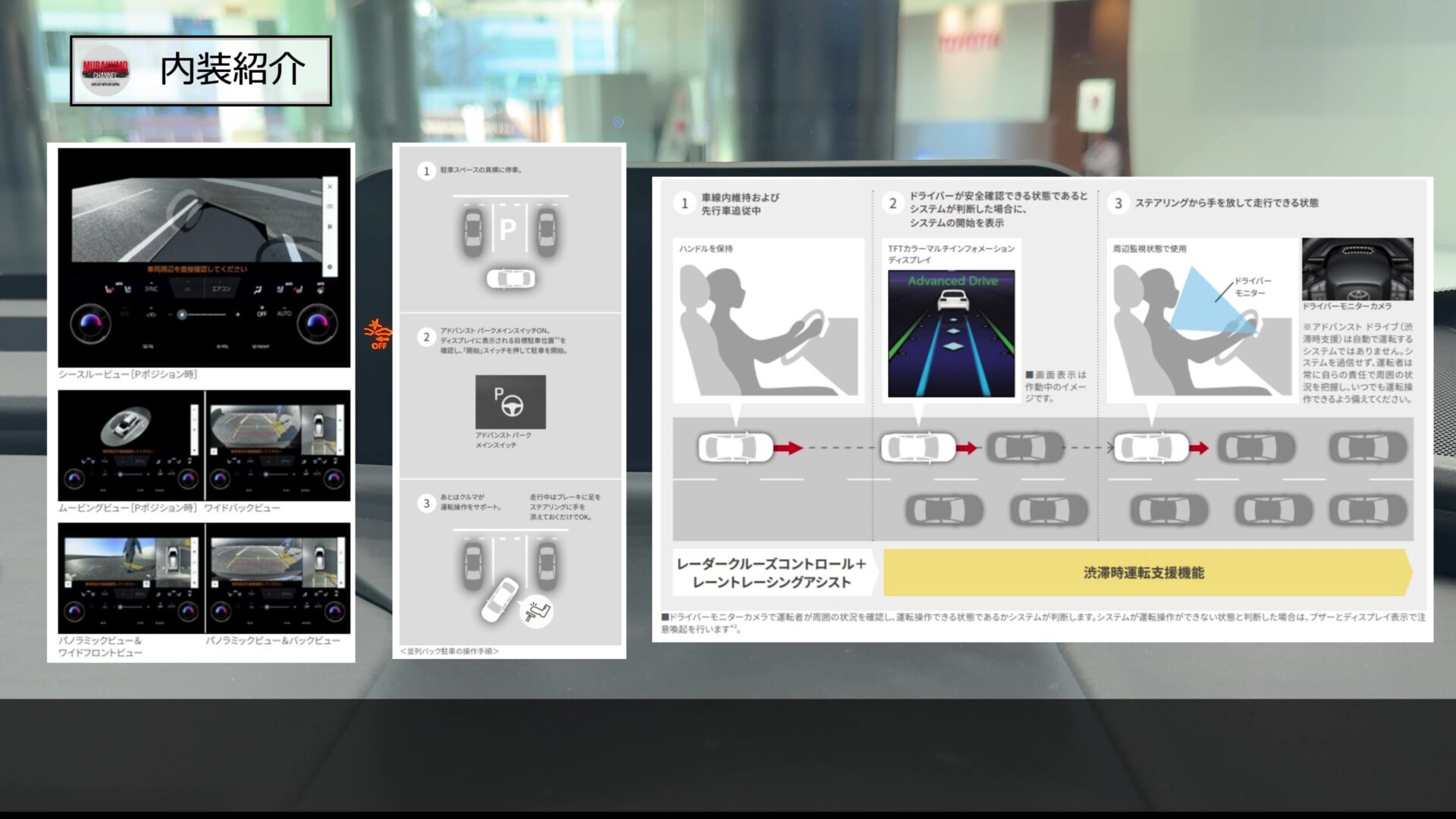 パノラミックビューモニター機能や、車両が駐車操作のすべてを実施するアドバンスドパーク、