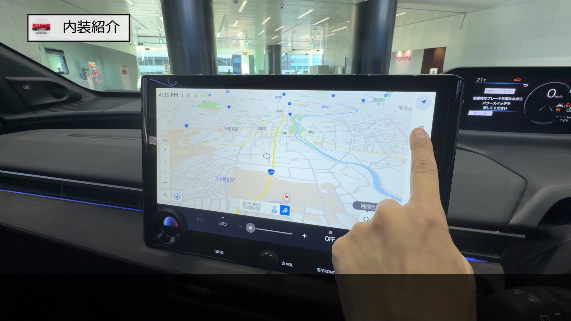 ナビ画面はこのようになっており、標準仕様の改良時点で大型化された14インチのディスプレイ式ナビゲーションが備わります。この14インチ大型ディスプレイは全車に標準装備で、画面は高精細で地図も見やすく、画面分割表示にも対応しており、ナビ案内とオーディオ情報などを同時に表示できます。