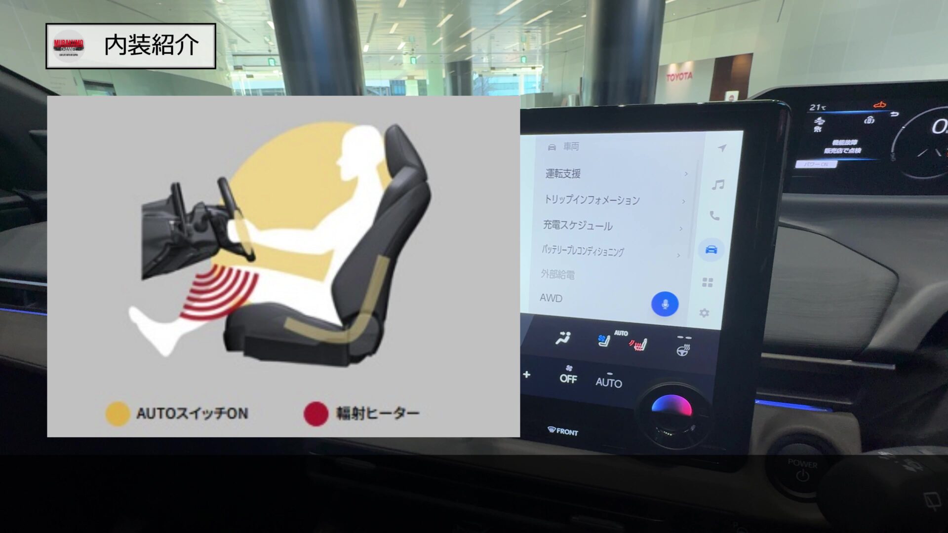 一気に足元全体を包み込むような暖かさを実現します。航続可能距離に影響する暖房をなるべく使わないようにするためのEVにとって重要な装備となっています。