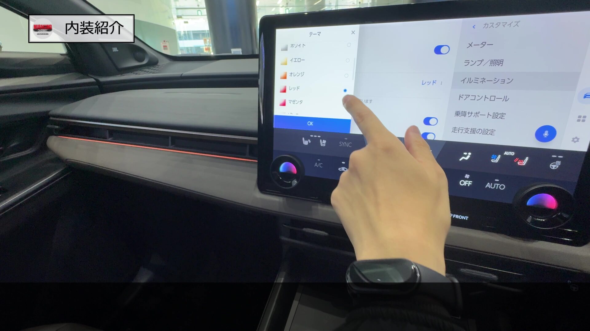 ちなみに標準モデルの改良のタイミングでインパネとインサイドドアハンドルまわりにアンビエントライトが配されており、様々なカラーで発光させることができ、そのときの気分に応じた室内空間とすることができます。