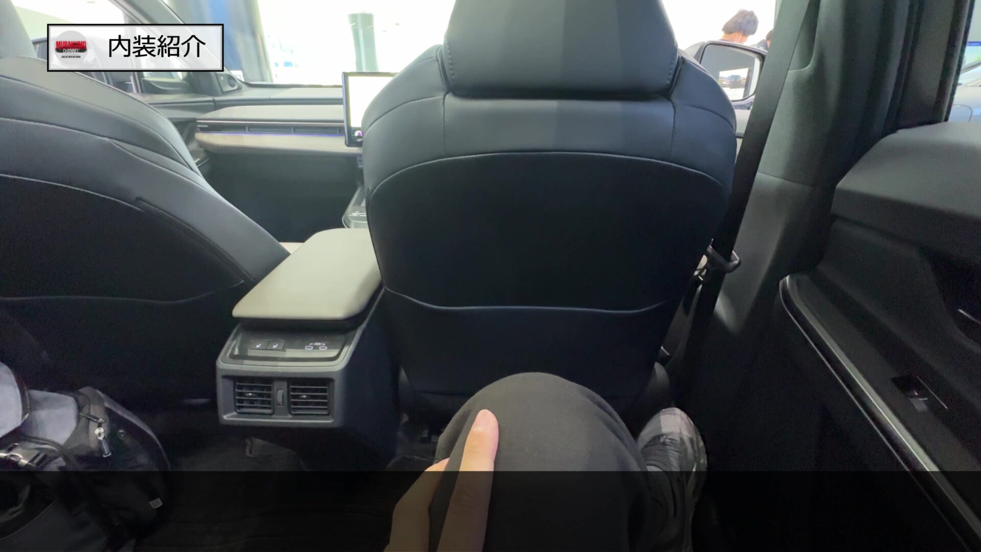足元スペースはこのようになっており、シート座面が高いため、少し膝裏が浮く感覚がありますが、ロングホイールベースを活かして、脚を組めるほどのスペースが設けられているため、気になることはなかったです。