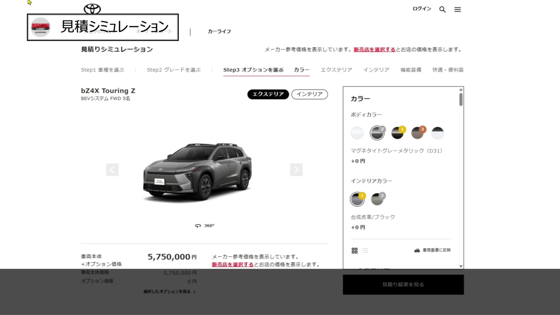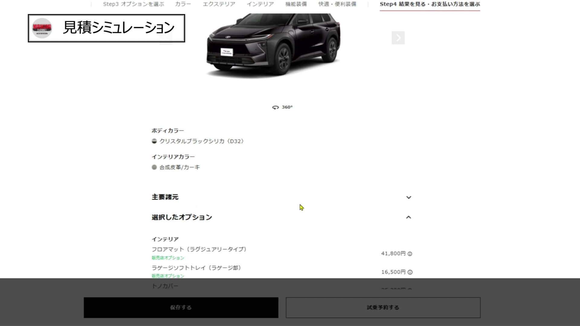 仕様としてはZのFFを選択し、ボディカラーは無償カラーのブラックを選択し、インテリアカラーもカーキを選択しました。オプションとしてはこちらも最低限とし、メーカーオプションは選択せず、ディーラーオプションとしてフロアマット、ラゲージマット、トノカバー、ナンバーフレームの基本的なものを選択すると合計金額は約600万円となりました。