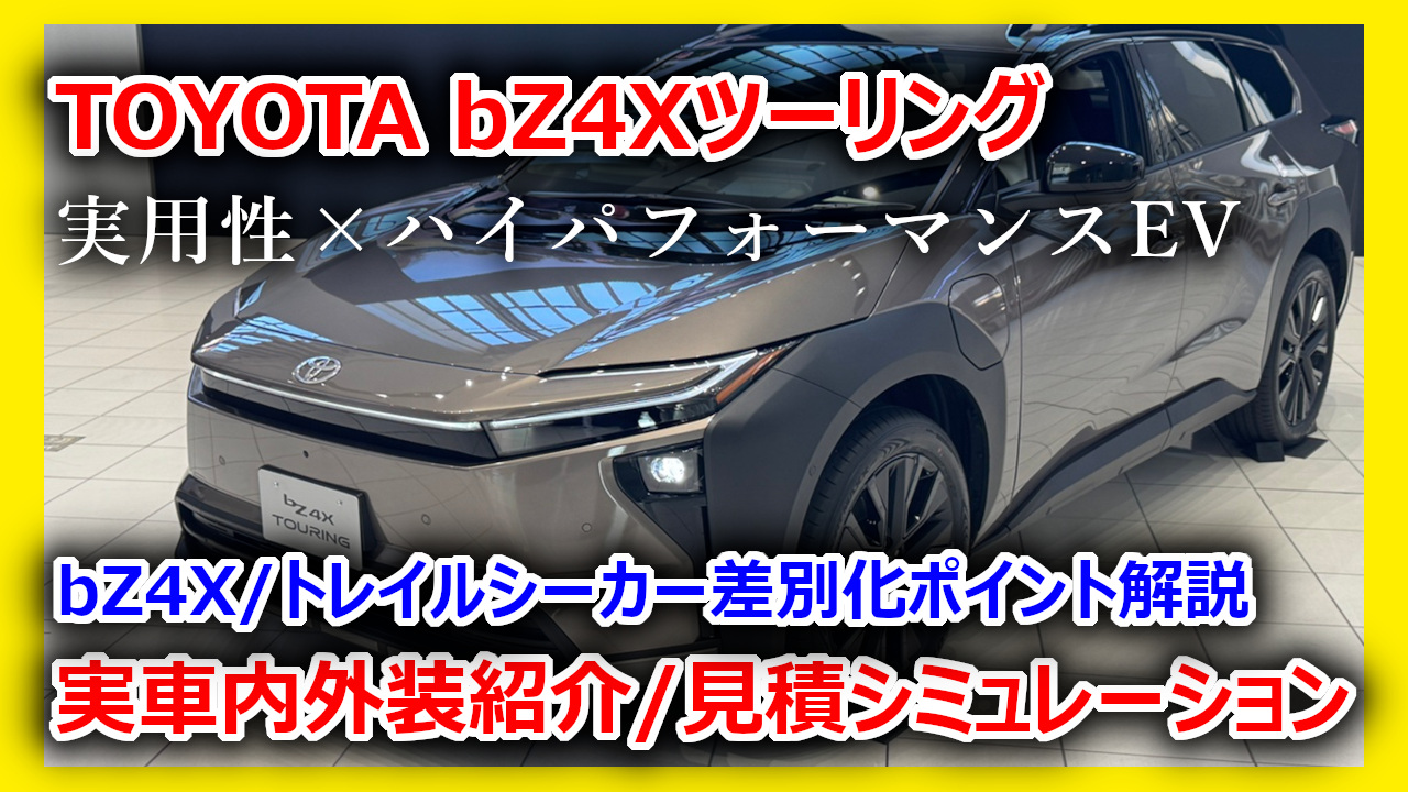 【本命モデル登場】トヨタbZ4Xツーリングを実車交えて詳細解説!380馬力&驚異の積載性。標準モデル/スバル「トレイルシーカー」との違いを徹底比較【見積り公開】