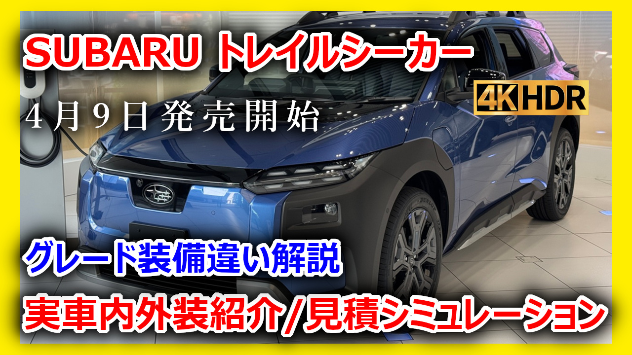 スバルが得意とするワゴンボディの実用性に4WDの走破性、圧倒的な動力性能を組み合わせた非常に商品性の高いBEVとなっており、要注目です。動画の後半では見積シミュレーションも行っていますのでぜひ最後までご覧ください。