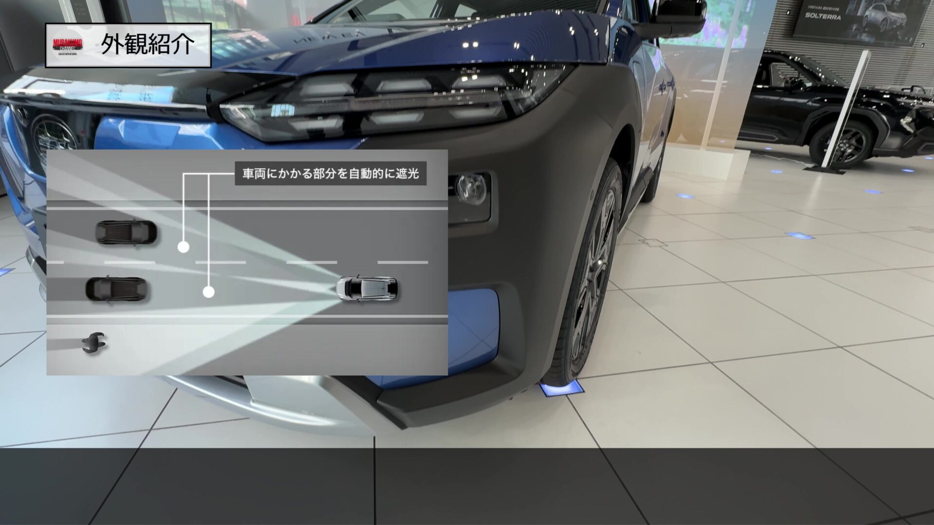 フロントデザインは標準仕様のソルテラとの共通性をもった次世代のスバルデザインとなっており、新形状の薄型LEDヘッドランプと造形が変わったフロントバンパーを採用しています。