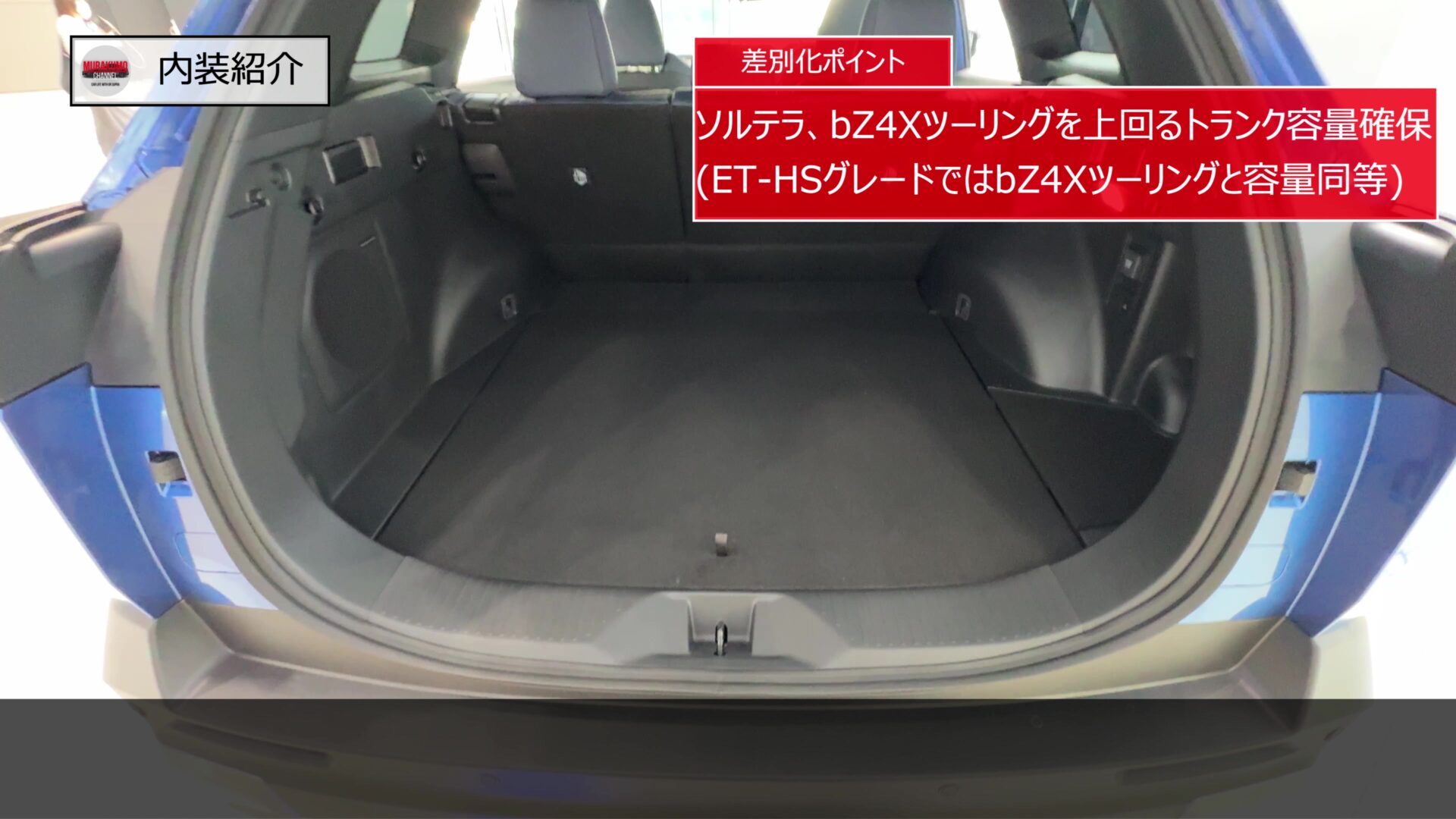 全長を延長した最大の目的はこの荷室空間の確保にあります。荷室容量はVDA法による測定でET-SSグレードで633Lという従来の電気自動車の常識を覆す巨大なスペースを実現しました。