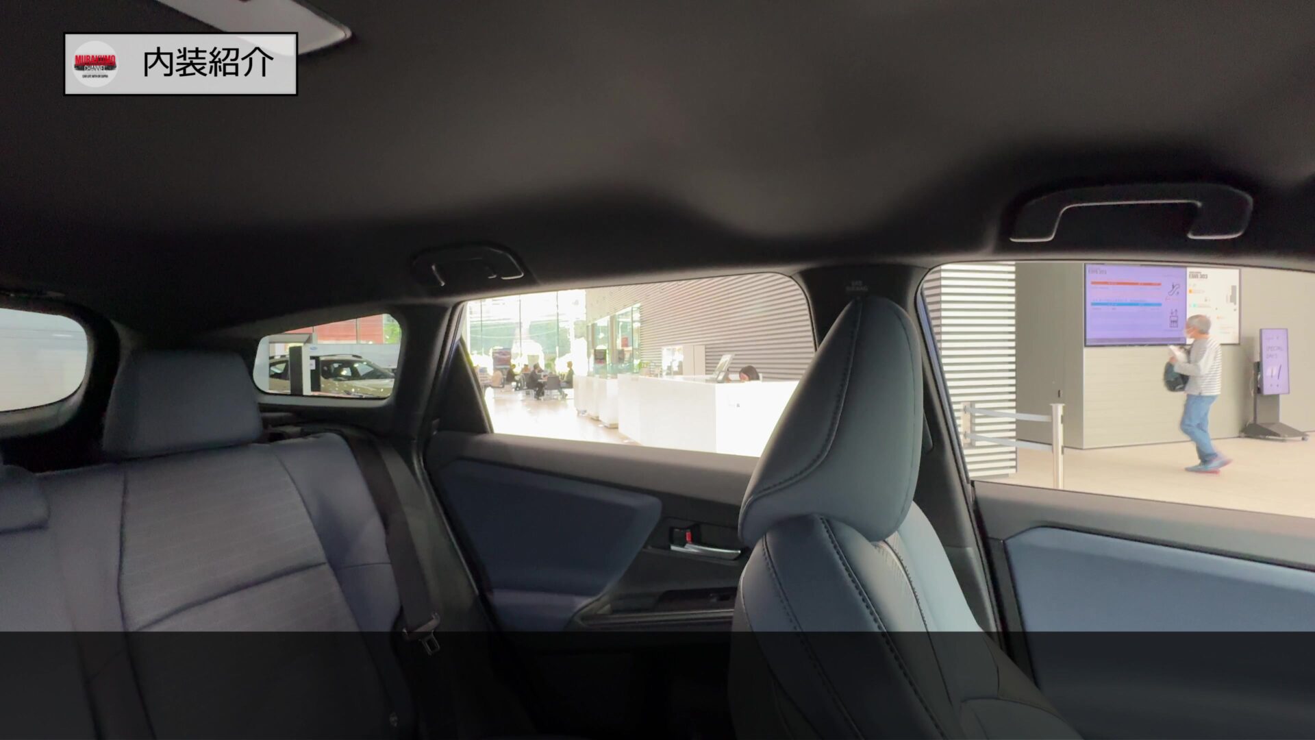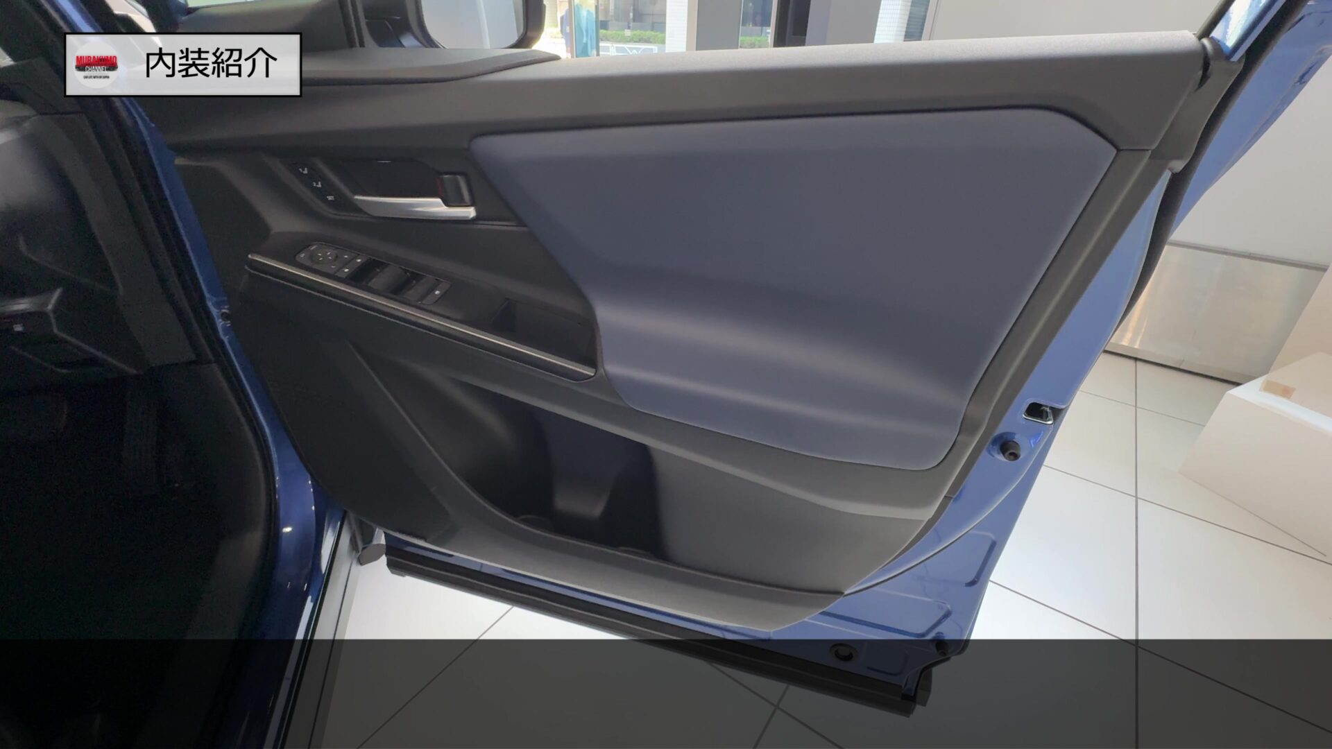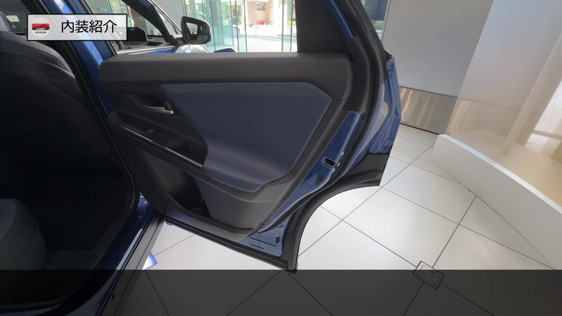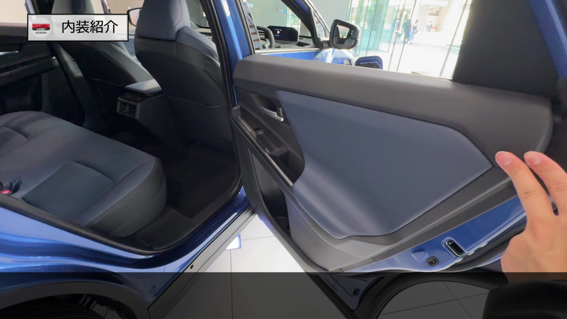 後席ドア内張はこのようになっており、前席同様、ブルーのソフトパッドがあしらわれ、前席同等の質感が担保されています。