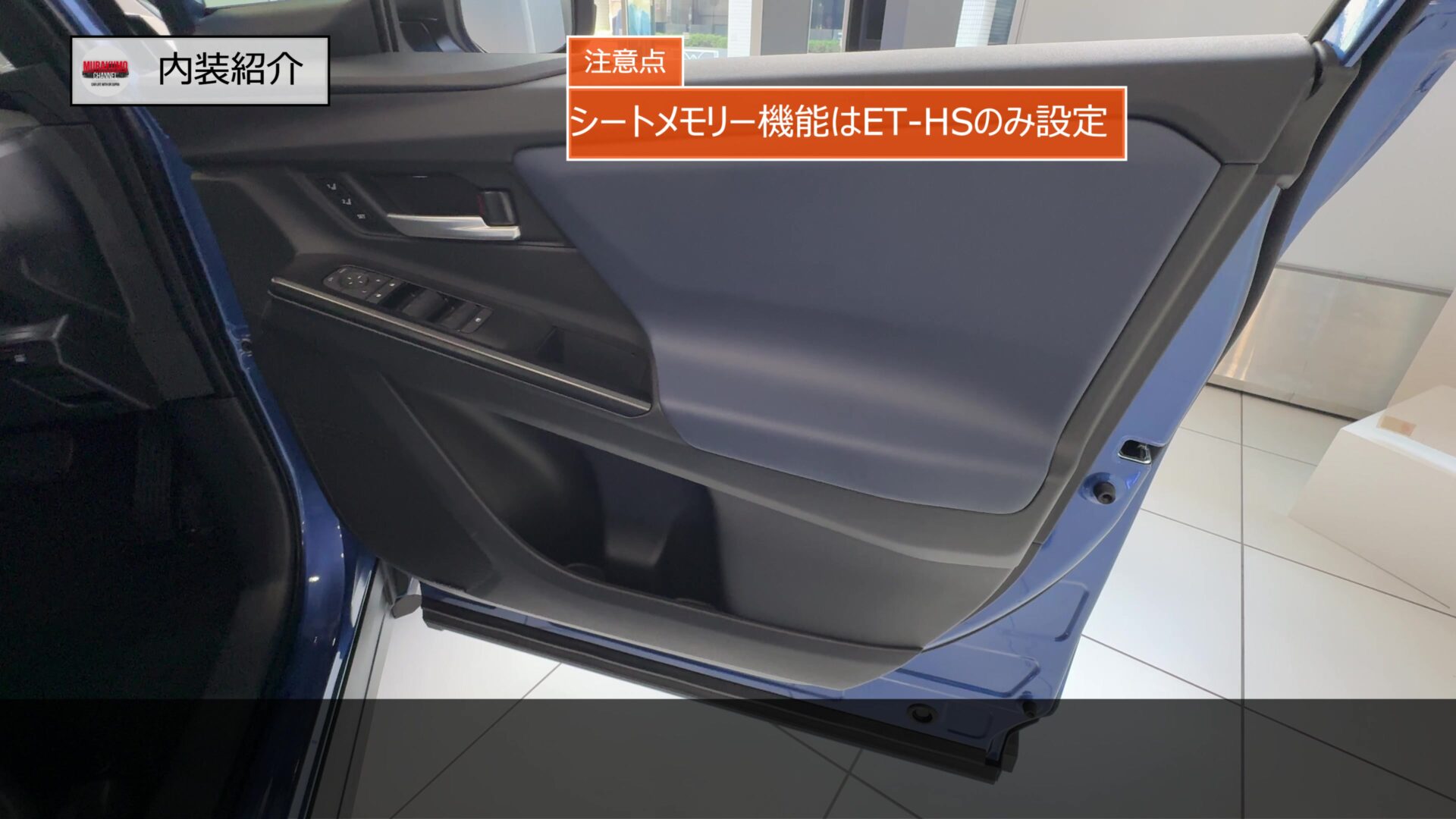 ドア内張はこのようになっており、こちらはET-HSの車両ですのでブルーのソフトパッドを中心に、ドアノブやウィンドウ台座などにも加飾が与えられており、質感の高さが担保されています。