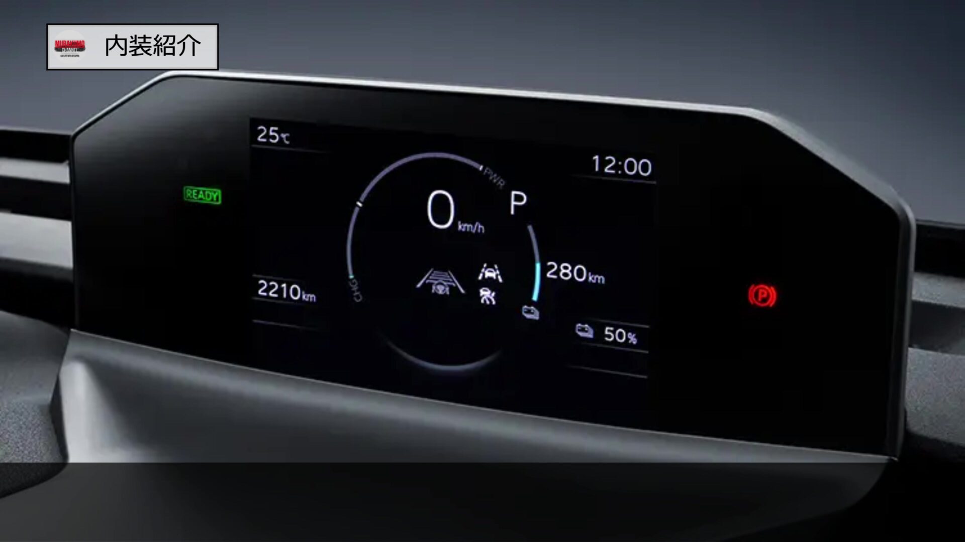 メーターデザインはこのようになっており、運転席前方にデジタルメータークラスターが配置されています。特徴的なのは、その配置位置であり、一般的な車よりもメーターが前方かつ高い位置にあり、メーターフード越しに表示を確認する形となっています。トヨタbZ4Xと共通のレイアウトですが、これはステアリング越しにメーターを見るのではなく、ステアリングの上方からメーターを見る「トップマウントメーター」というコンセプトです。視線移動を最小限に抑えつつ情報を確認できるので、安全性に寄与します。