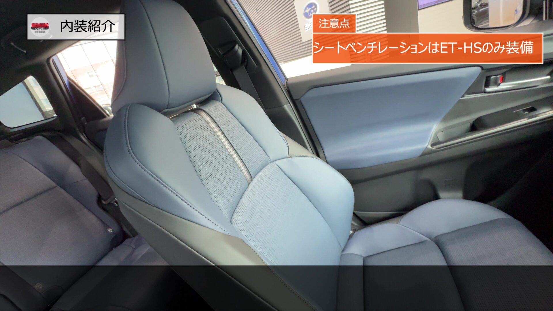 ソルテラにもブルー内装の設定がありましたが、ブルーの面積がトレイルシーカーの方が大きくなっており、ブルー一色に近い配色となっている点はポイントです。bZ4Xツーリングではアウトドア感の強いカーキ内装が新規に設定されており、インテリアカラーでもアウトドア感を主張していましたが、トレイルシーカーにそのテイストのインテイリアカラーの設定がなさそうなのは意外なところです。素材に関してもET-SSが合成皮革、ET-HSではナッパレザーが採用されている点でも