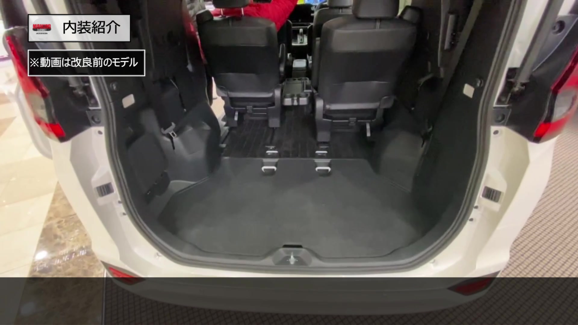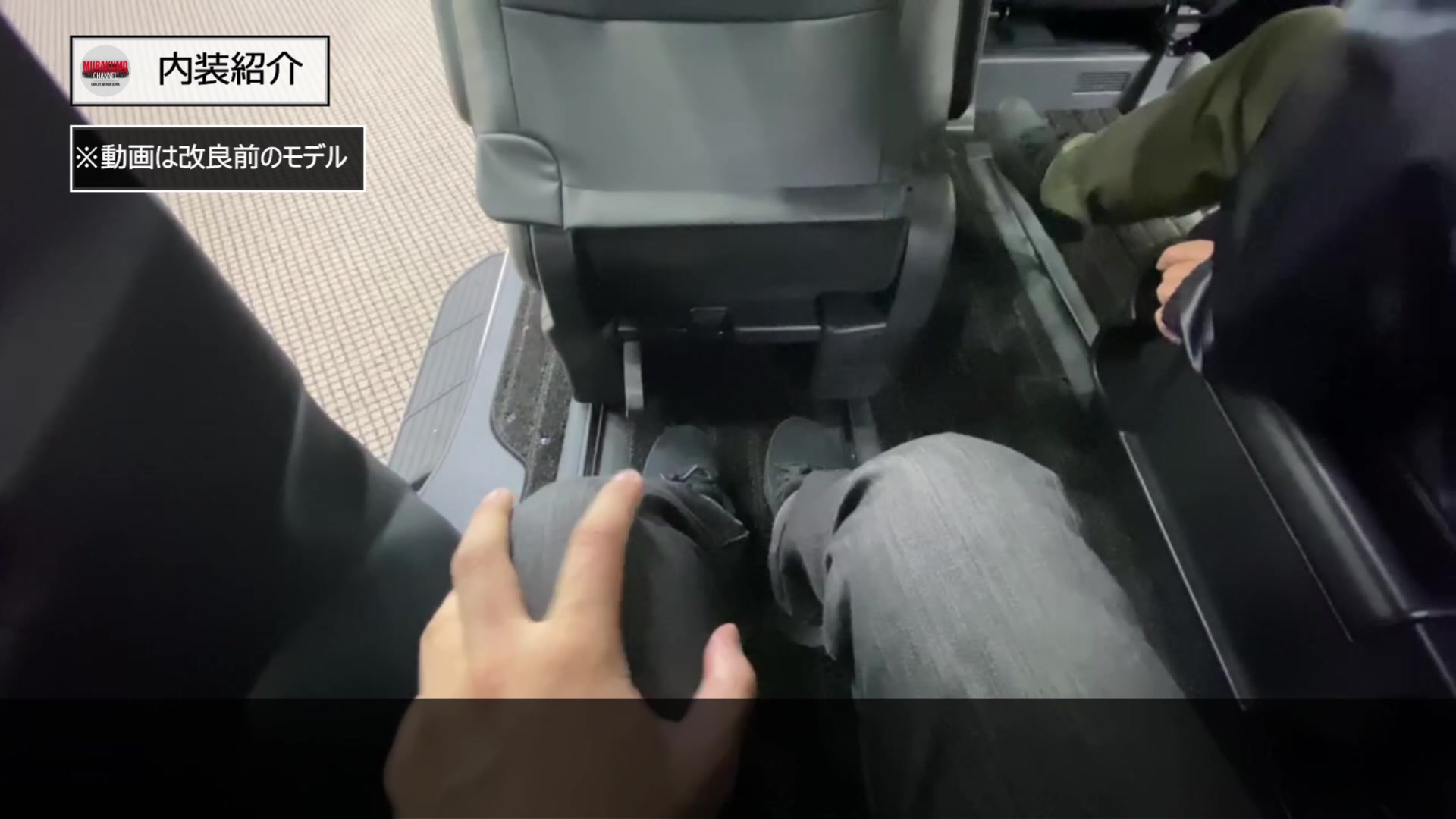 3列目への乗り込み方としては、このように2列目を前に出す方法とセンターテーブルを折りたたんでウォークスルーする方法があります。