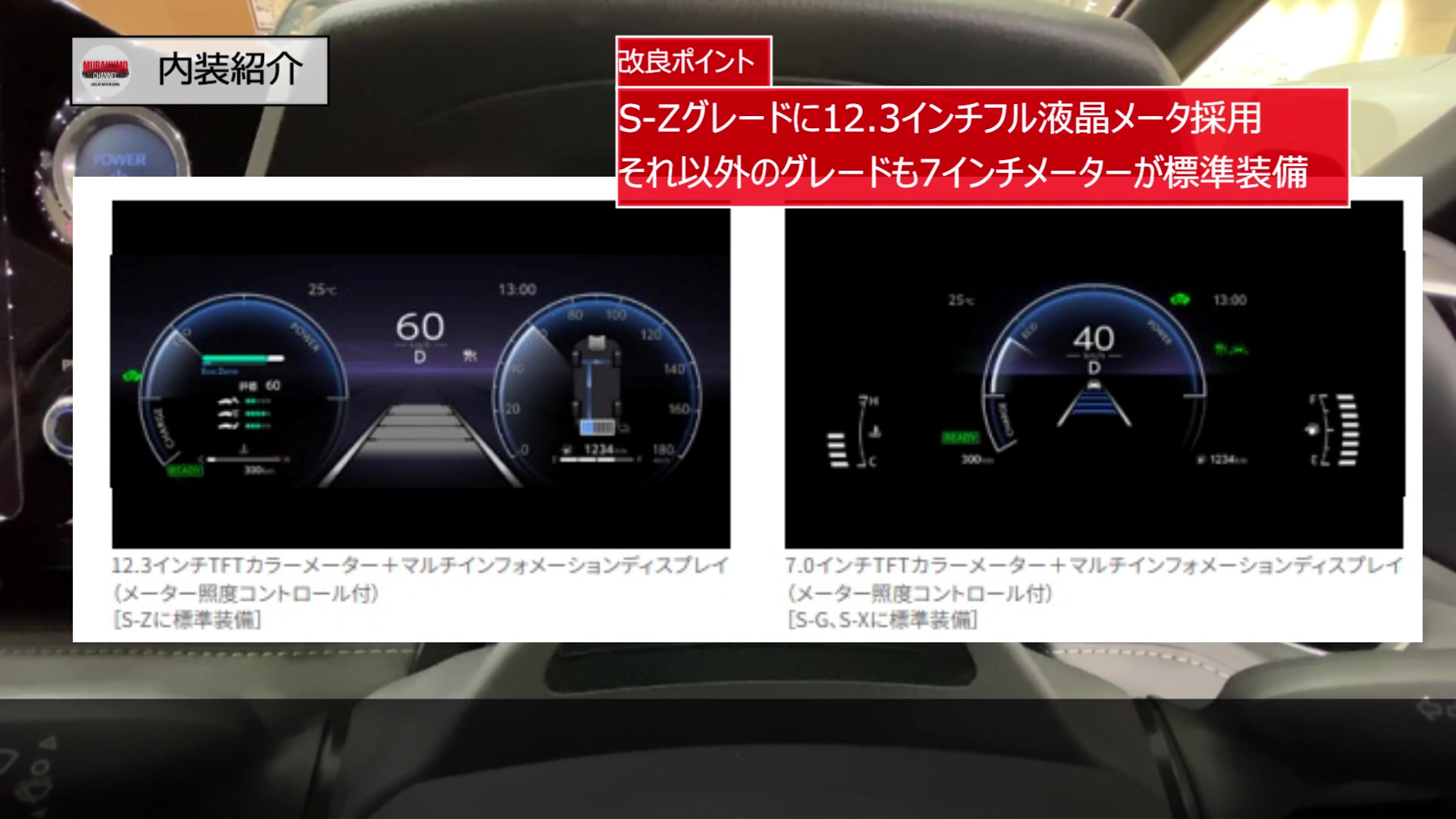 最上級グレードのS-Zには12.3インチのフル液晶メーターが標準装備されました。表示内容を自在にカスタマイズでき、視認性と先進性が飛躍的に高まっています。