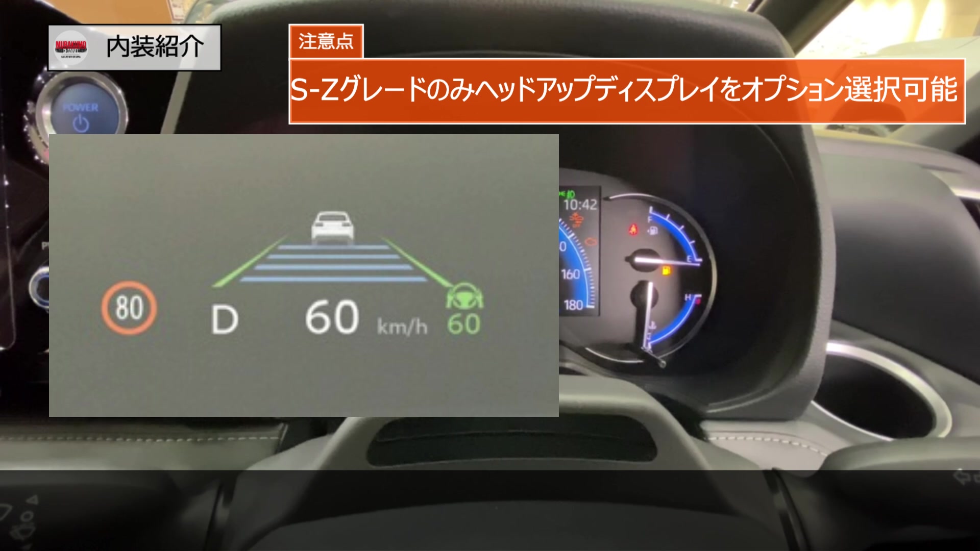 また、フロントガラス上に様々な情報を投影するヘッドアップディスプレイの装備が設定されており、こちらを装備することでより多くの車両情報を取得することができますが、こちらはS-Zのみオプション選択可能となっており注意です。