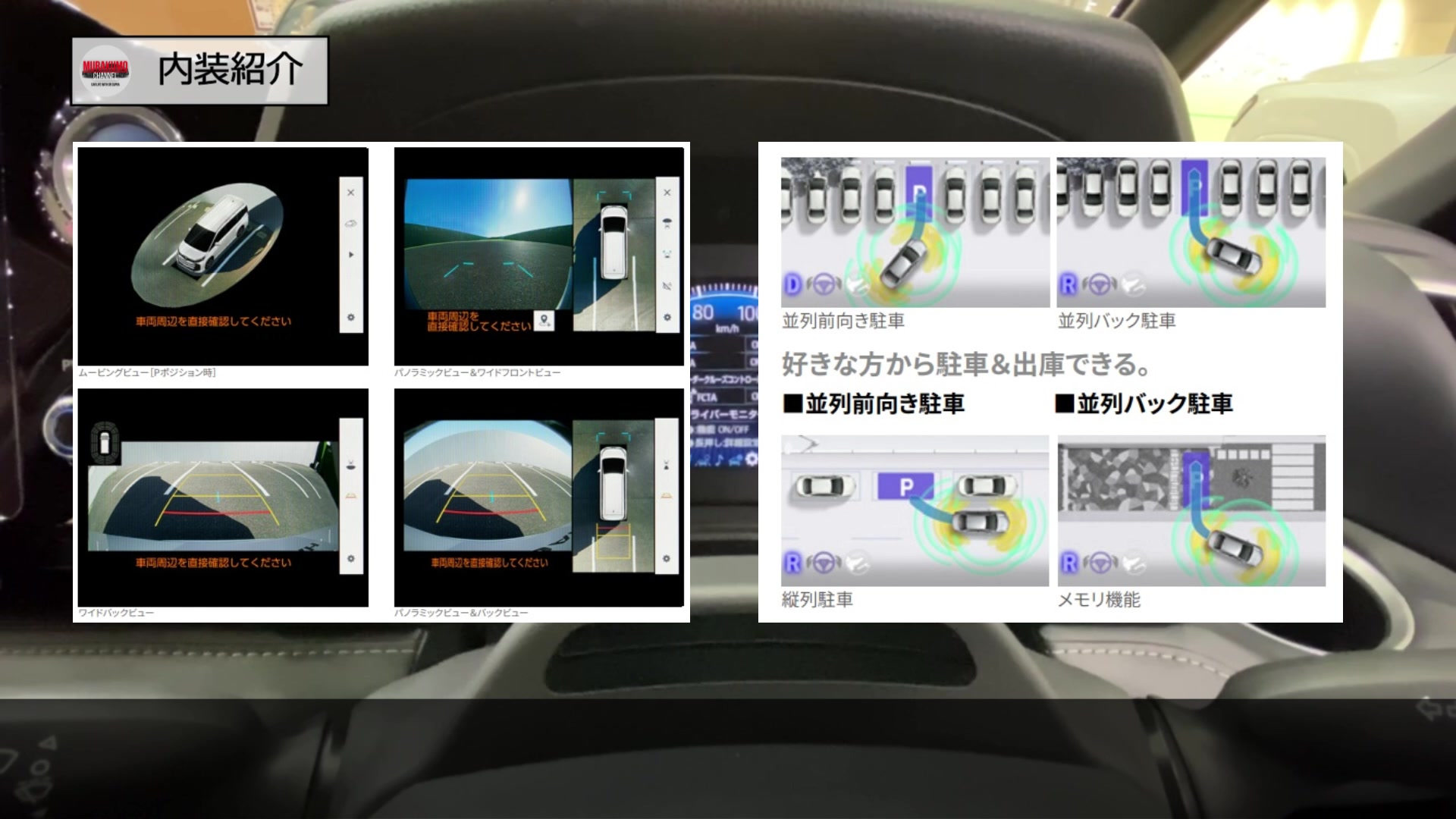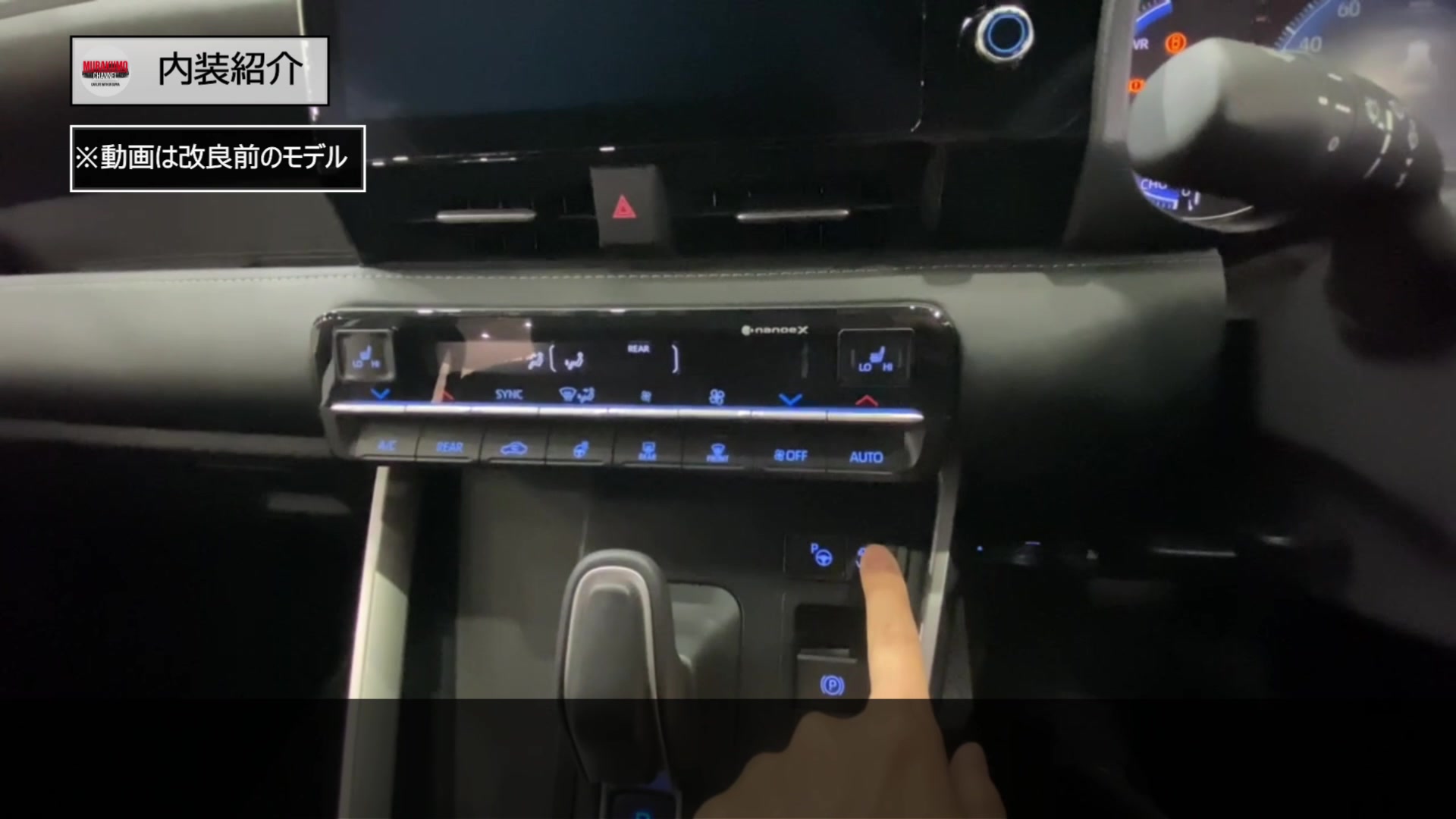 その横にはパノラミックビューモニターのスイッチが配置され、床下が透過したような形で車両の周囲の安全確認が可能となります。この機能は目線が高い故に車両直近の死角が大きいミニバンには必須の装備かと思いますので、ぜひ装備したいところです。