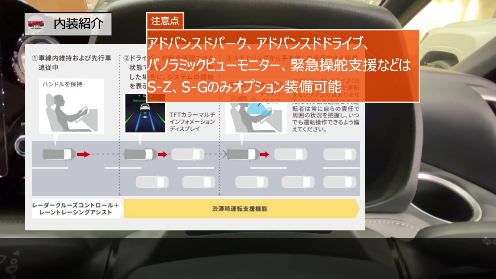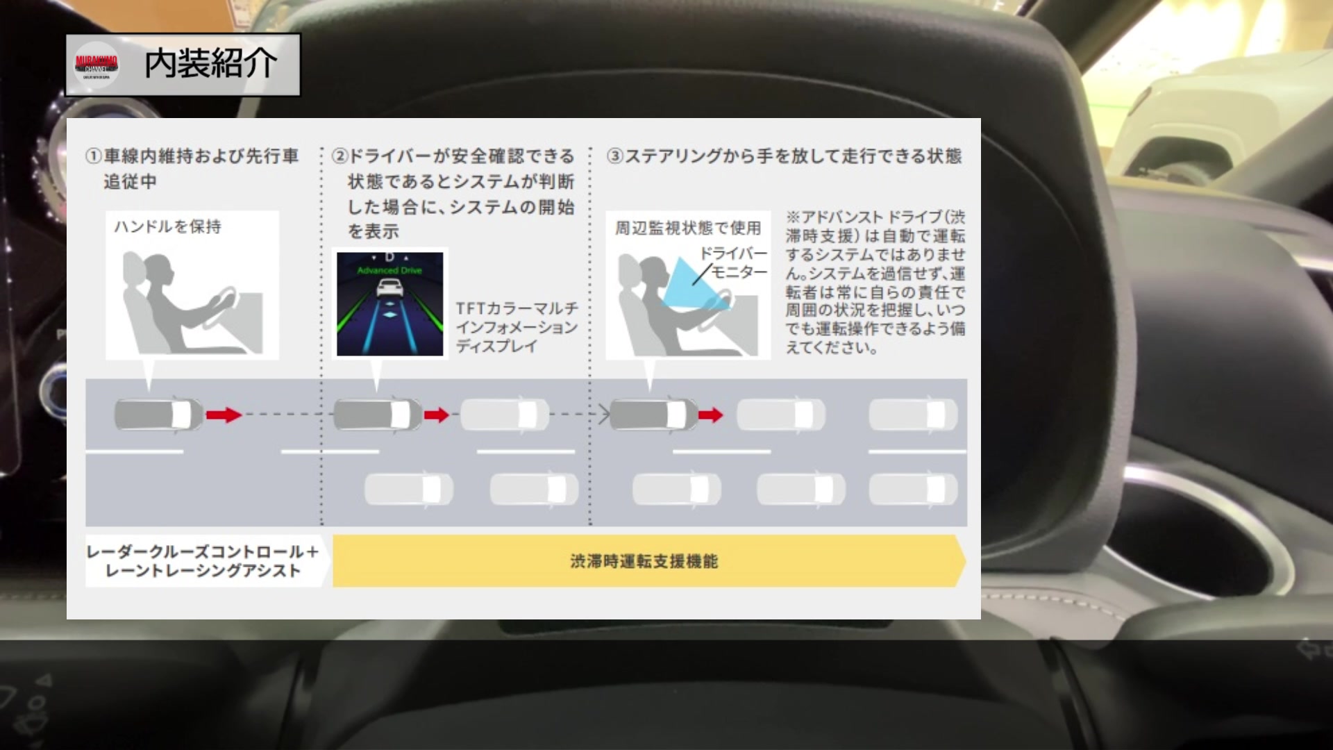 また後程紹介しますが、渋滞時のレベル2相当の運転支援を実現するためのドライバー監視モニターが備え付けられている点が最大の特徴です。