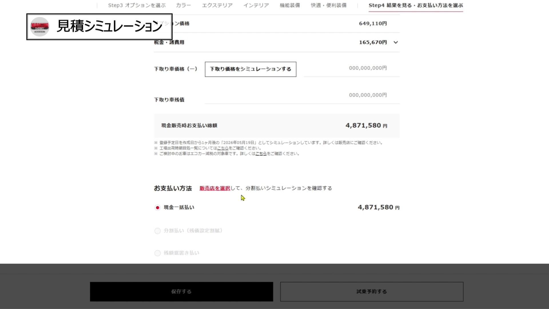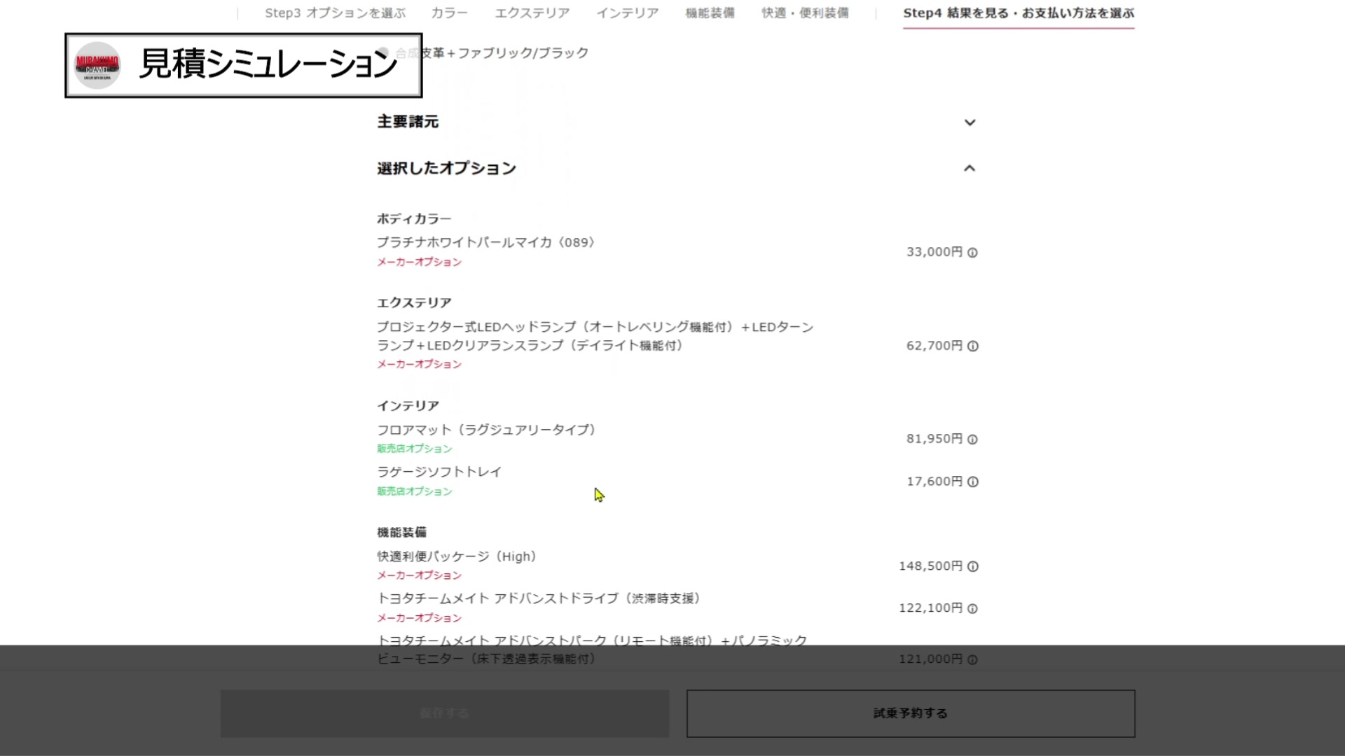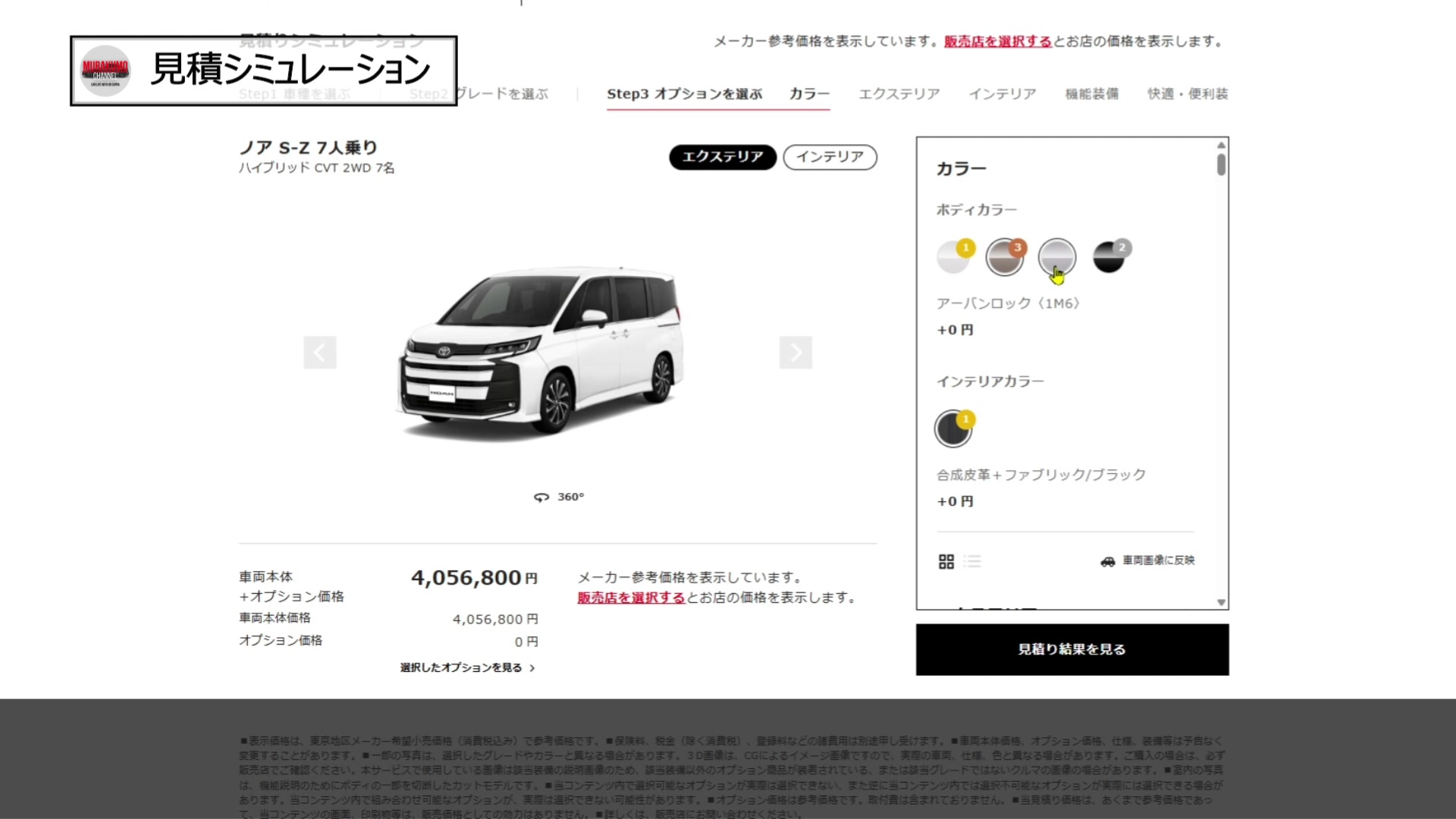 最も人気が出るであろう「S-Z (2WD/7人乗り)」で、フルオプションに近い内容で見積もってみました。