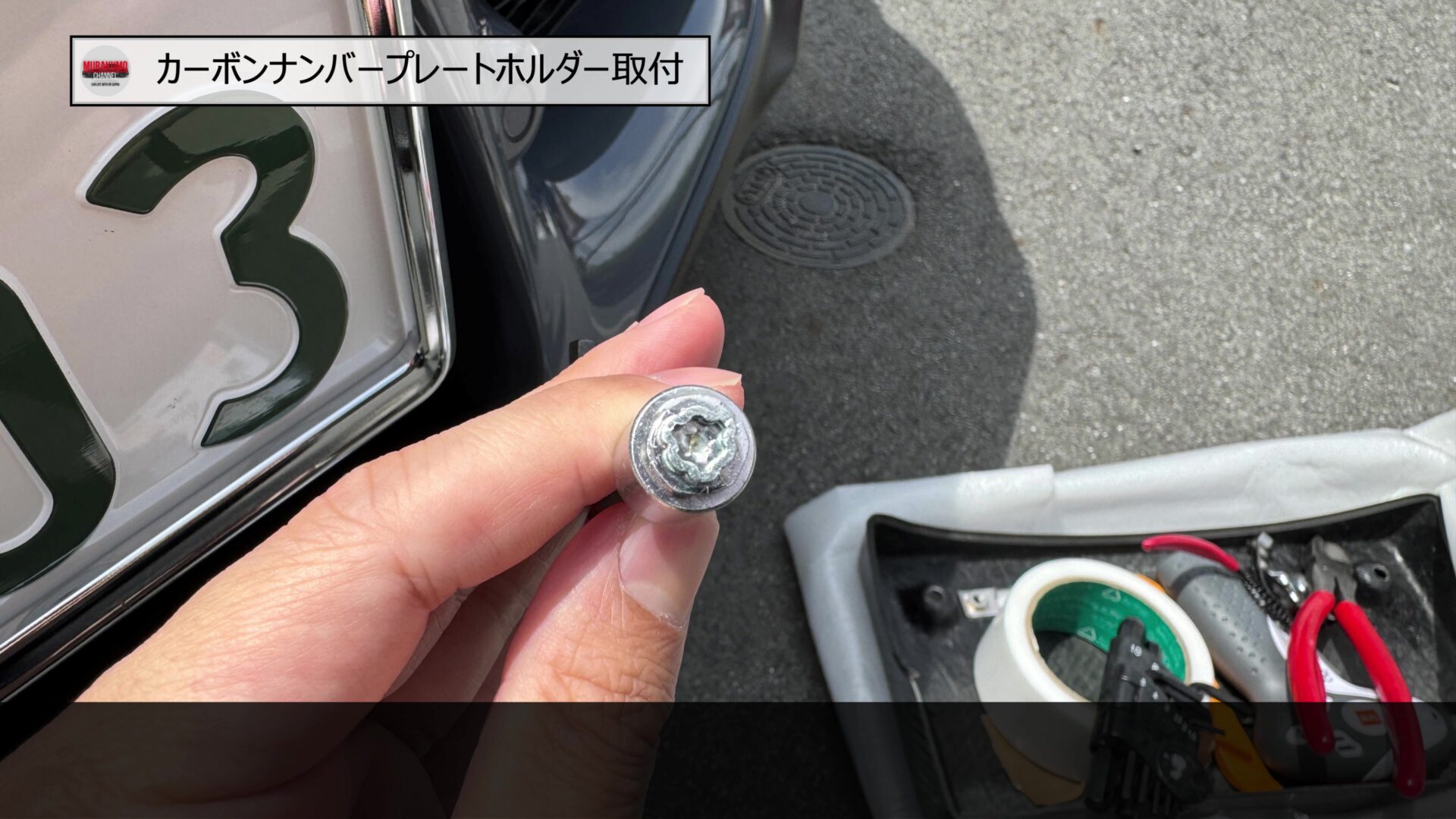 今回のスープラの場合、ナンバープレートのボルトが盗難防止用のロックボルトとなっており、