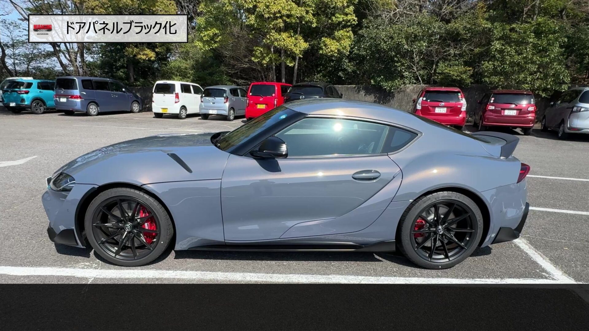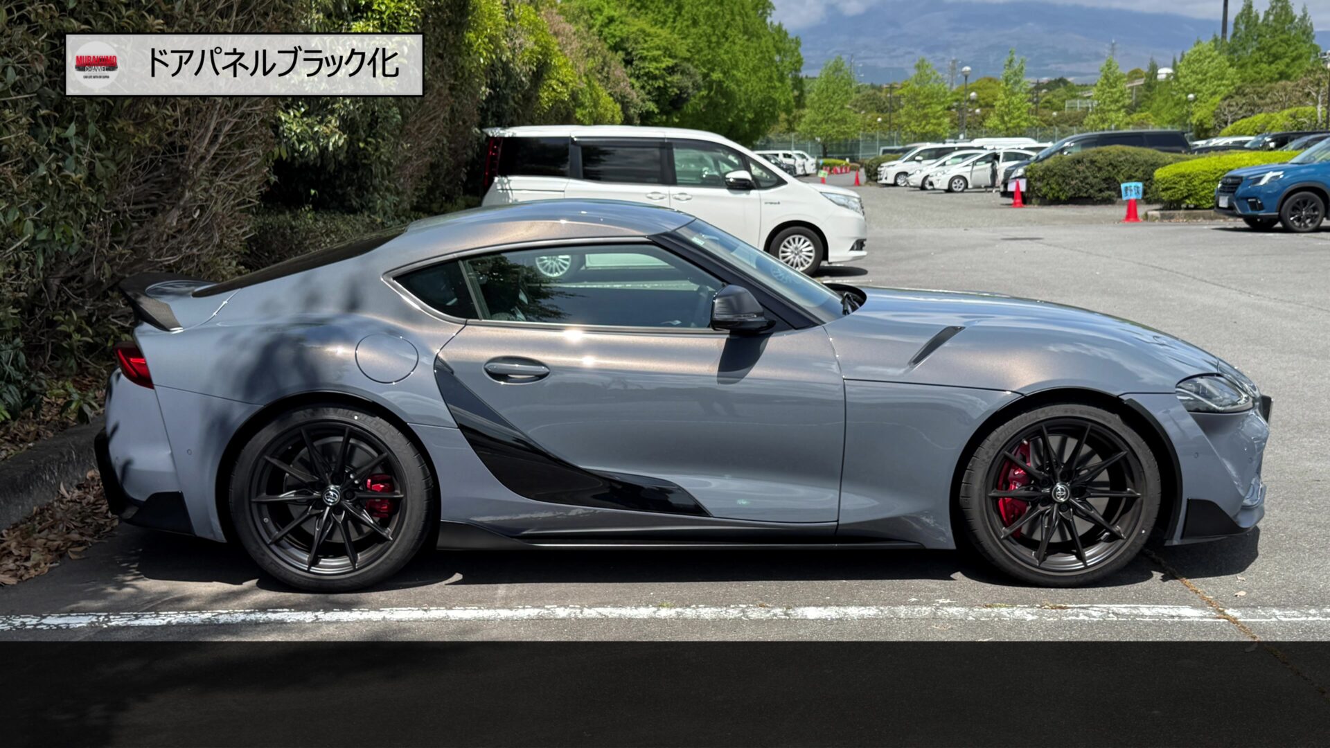 元々、スープラのサイドのデザインはリアフェンダーに向けて駆け上がっていくようなデザインをしており、それをより強調することを目的に、1代目同様、ドアパネルのブラック化を行っていきます。