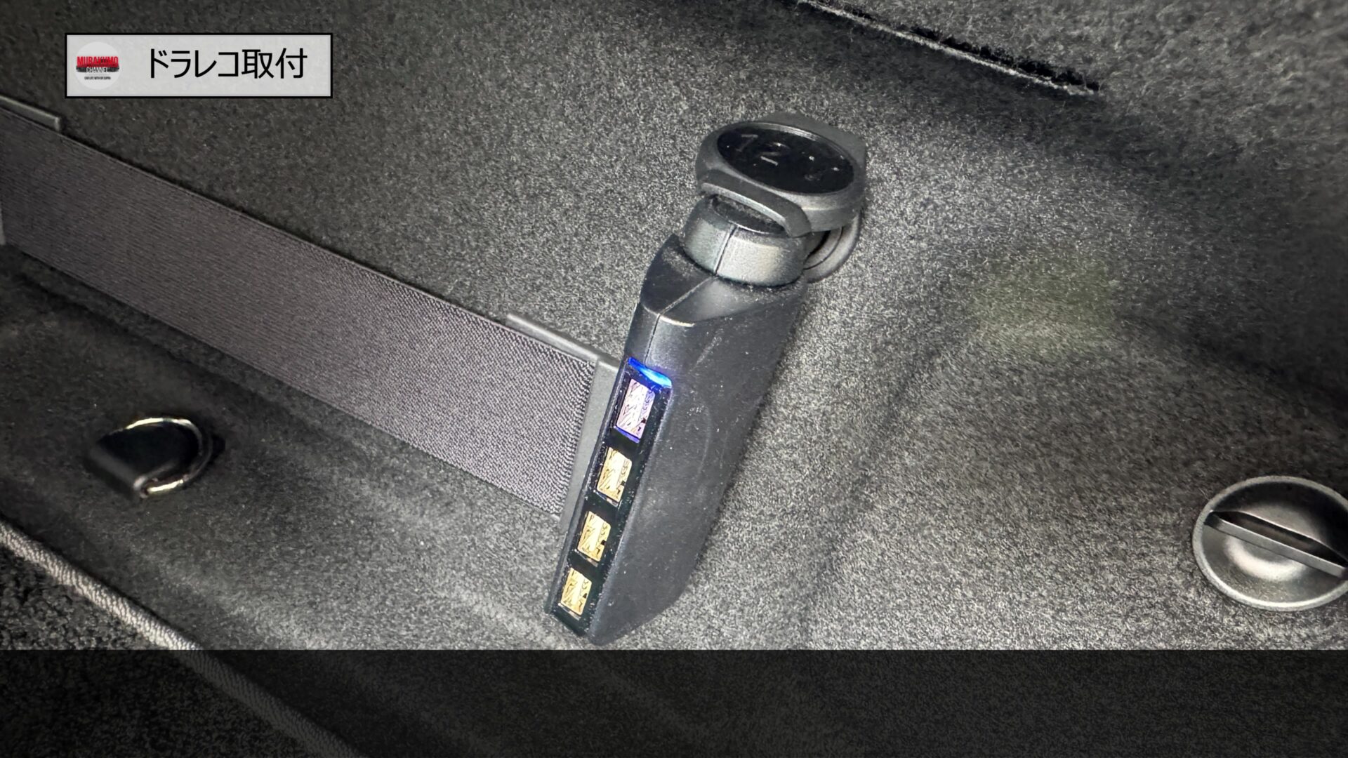 ケーブルの電源供給はトランクサイドにあるシガーソケットにUSBポートを複数備えた器具を取り付け、こちらからUSB電源で供給していきます。