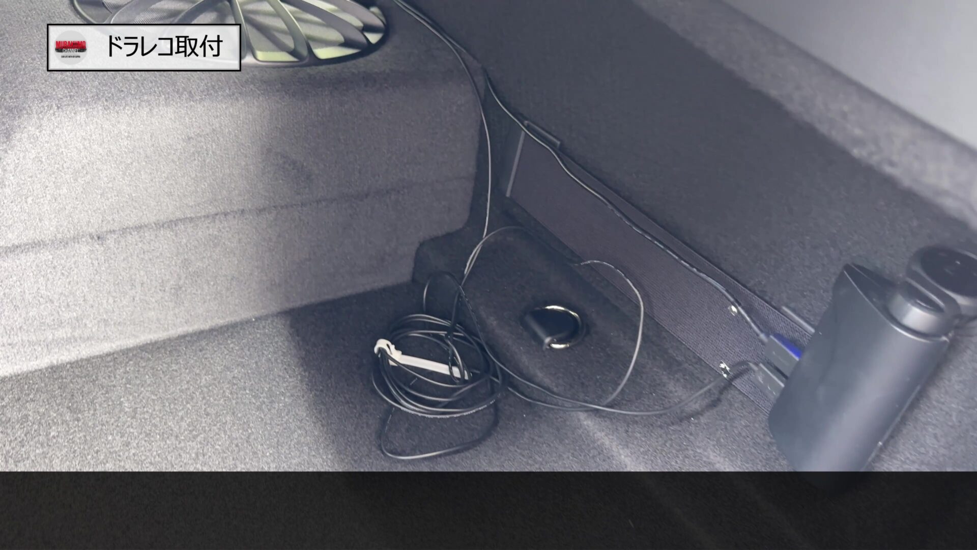 このように少しケーブルがゴチャっとしていますが、トランクマットの下敷きにしてごまかしていますね(笑)。これでドラレコの取付完了です。